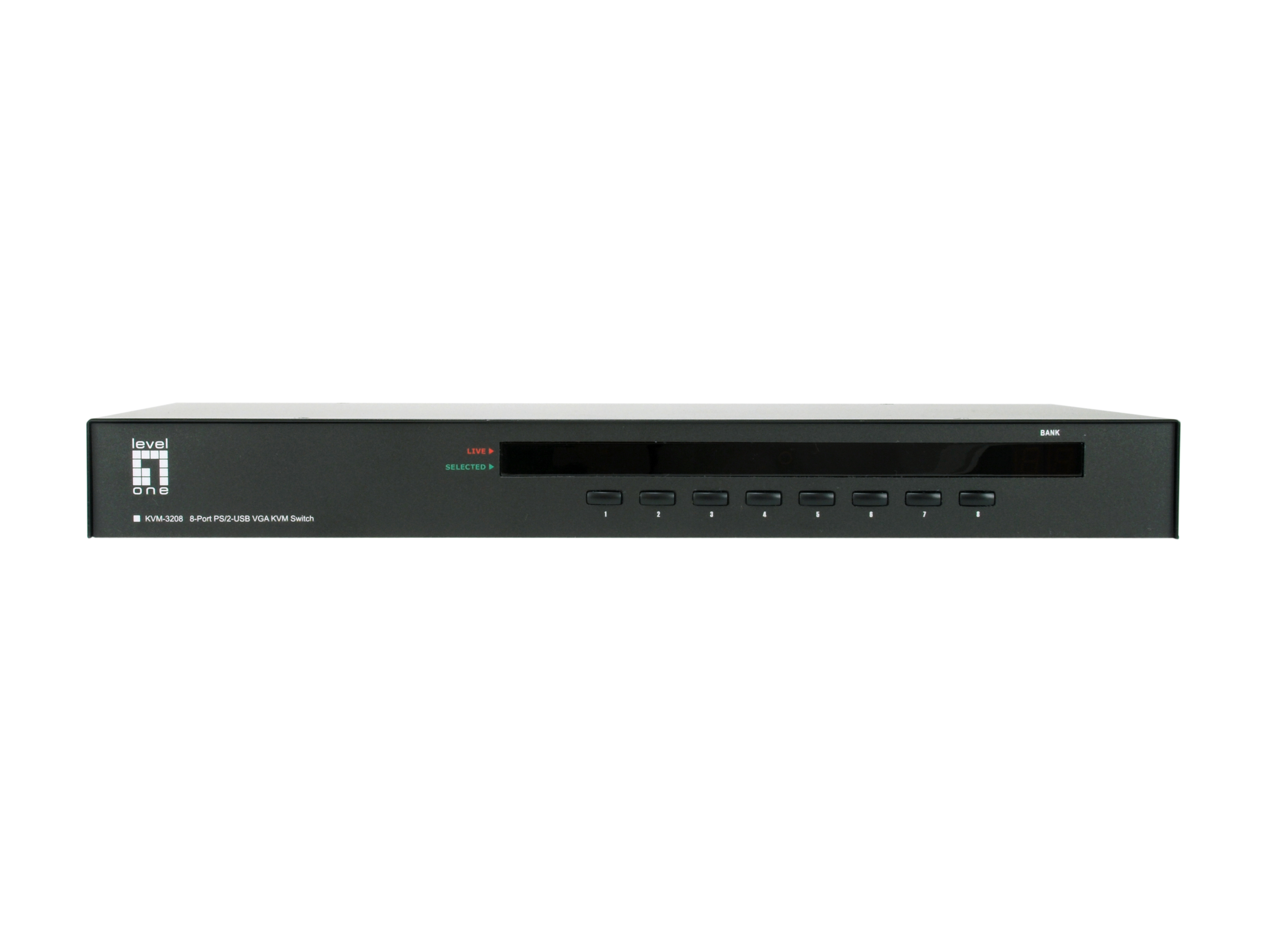 LevelOne KVM-3208, 2048 x 1536 pixel, Stativ-montering, 1U, Sort