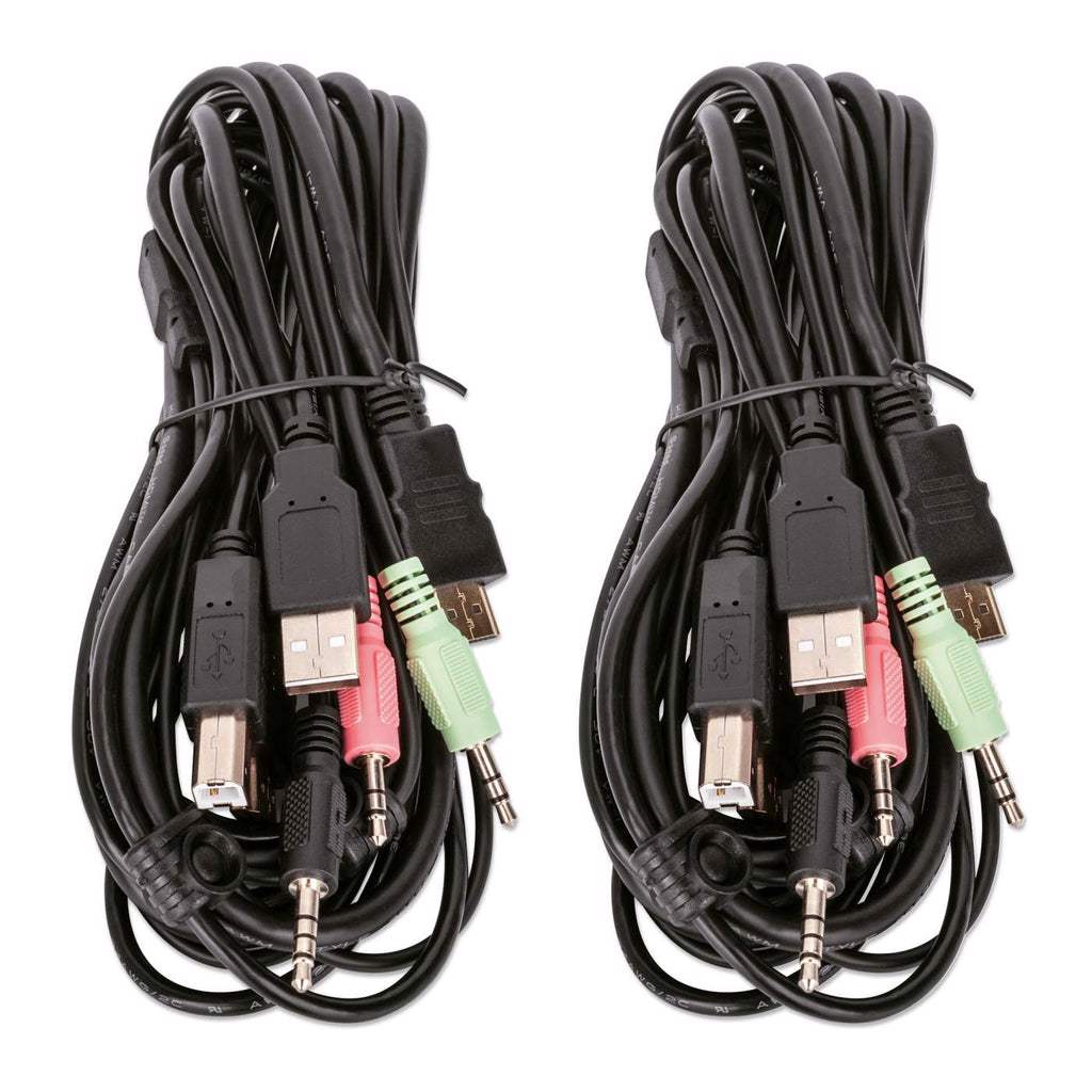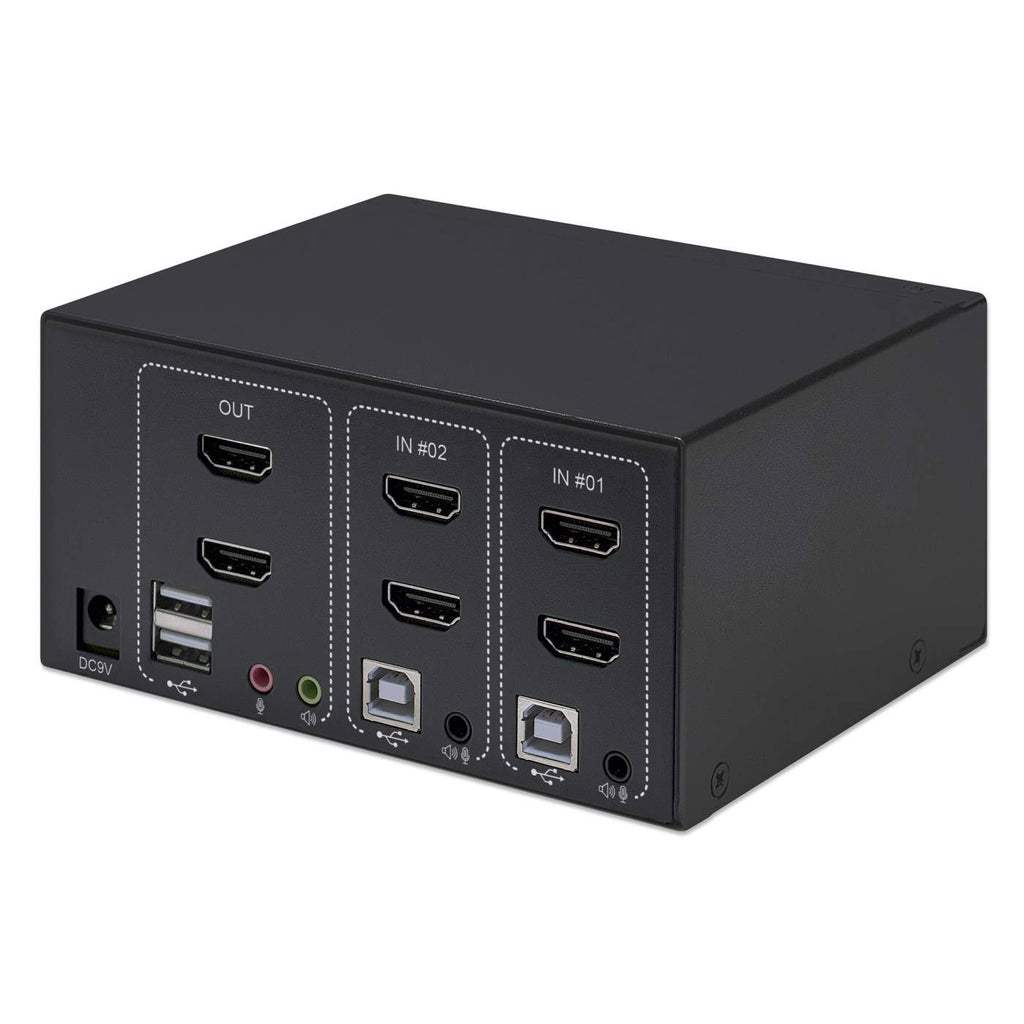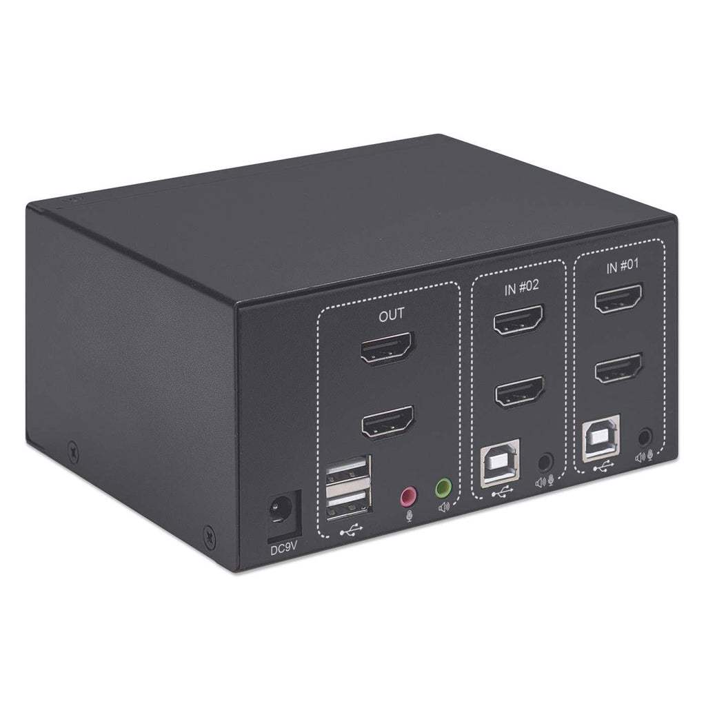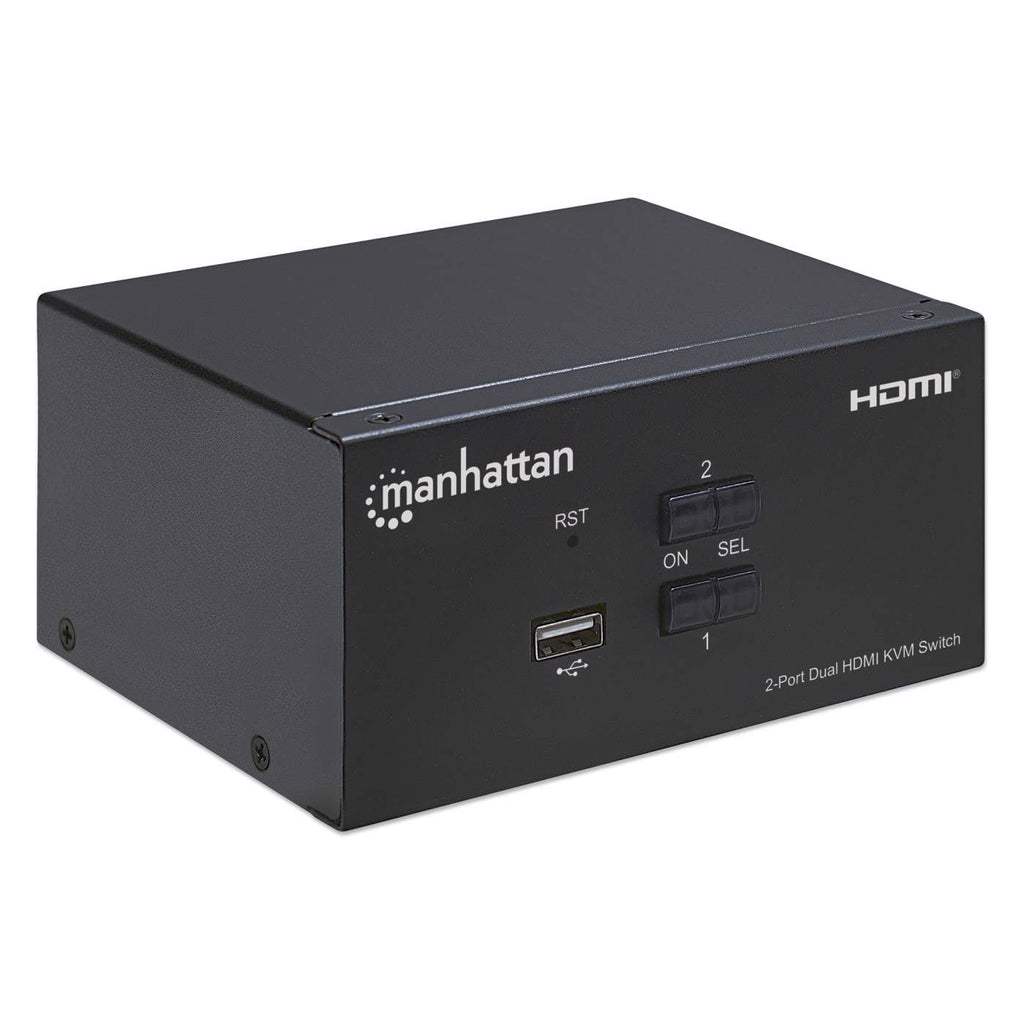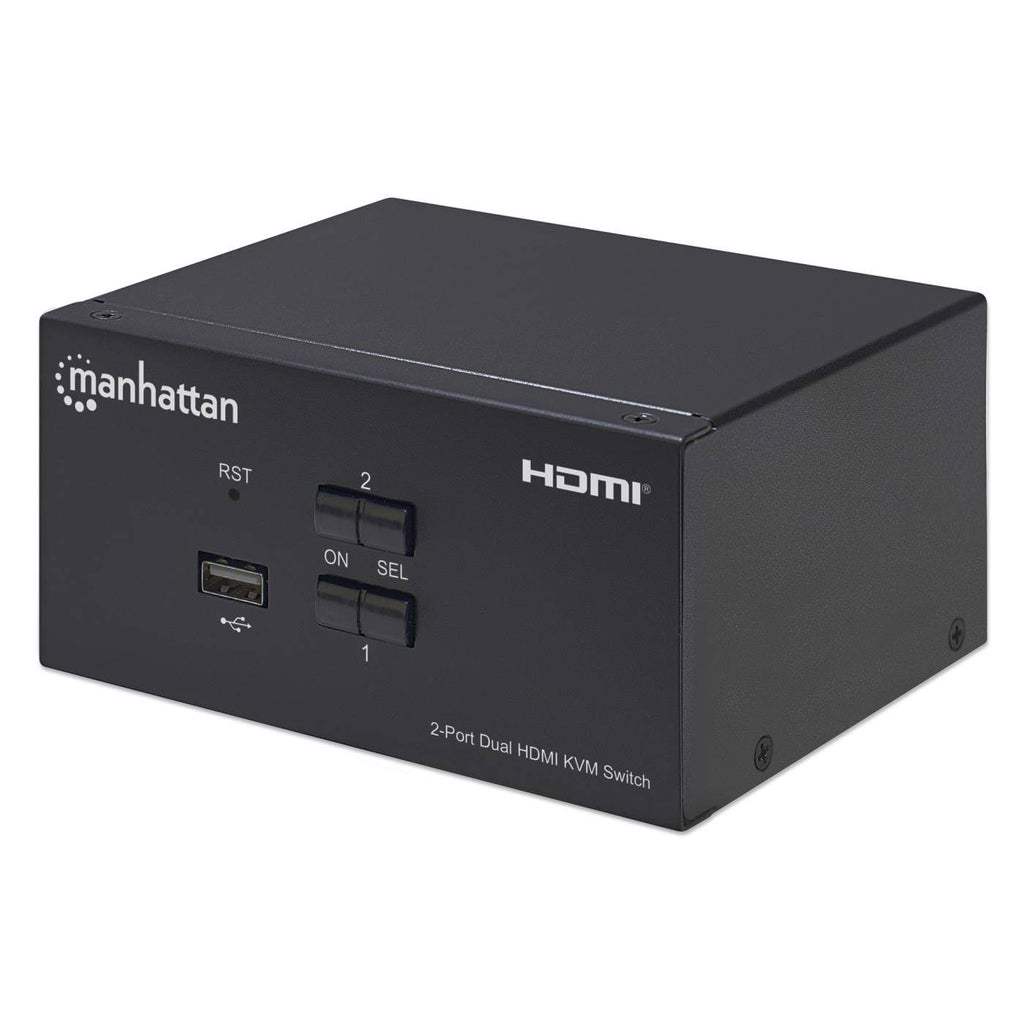 The Manhattan 2-Port Dual-Monitor HDMI KVM Switch is a compact solution for providing access and control over two HDMI/USB-equipped computers from a single keyboard and mouse and up to two monitors. It helps save you time on installation with its included combo cables — there's no need to purchase additional ones — that easily connect directly to the system.