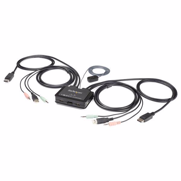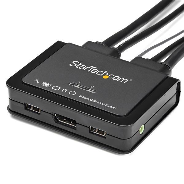- SPACE-SAVING DESIGN: Compact 2 Port DisplayPort KVM Switch w/ built-in cables & remote switching provides USB powered control of two computers from one keyboard, monitor, and mouse