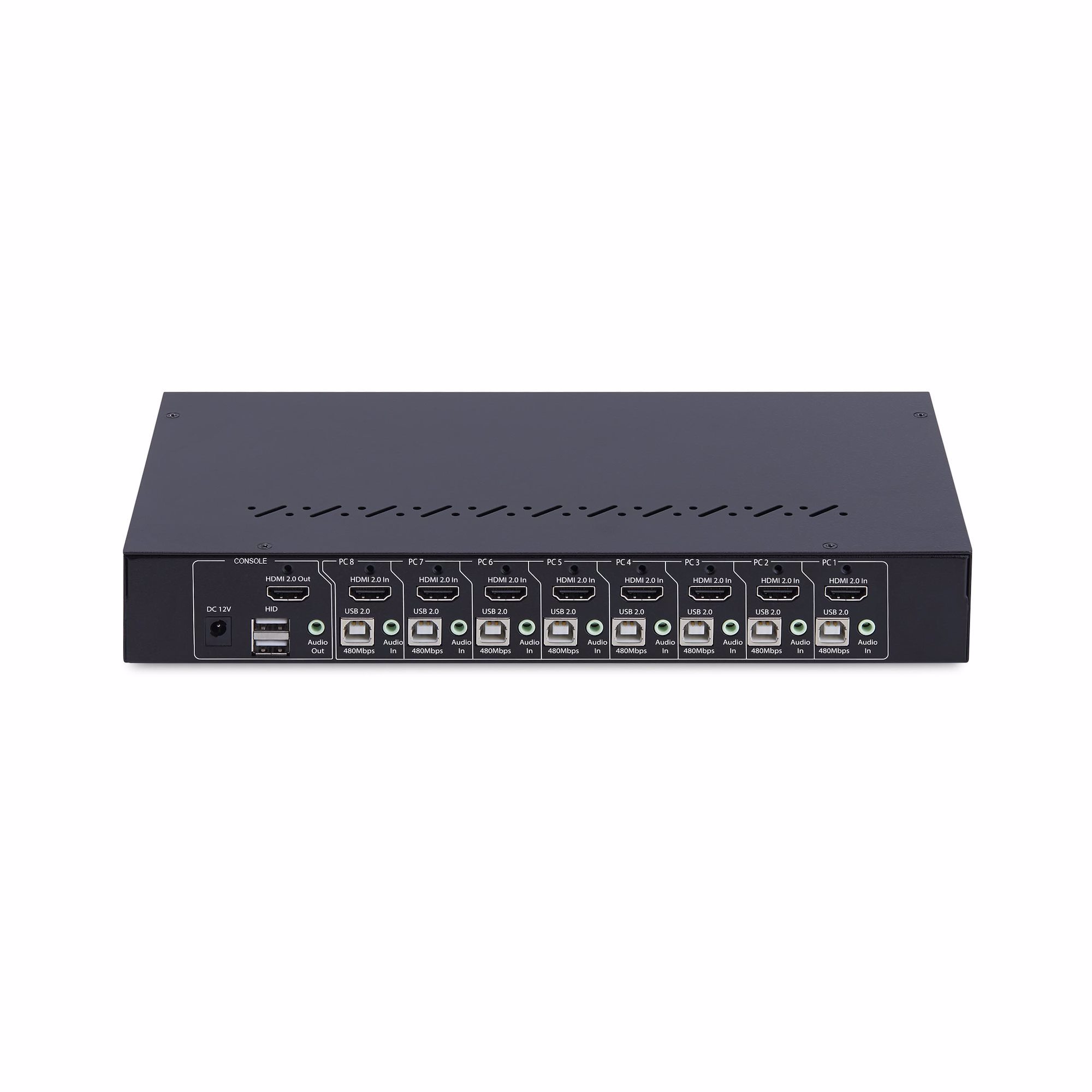 Control up to eight USB and HDMI-enabled computers from a single keyboard, mouse, and 4K 60Hz HDMI monitor