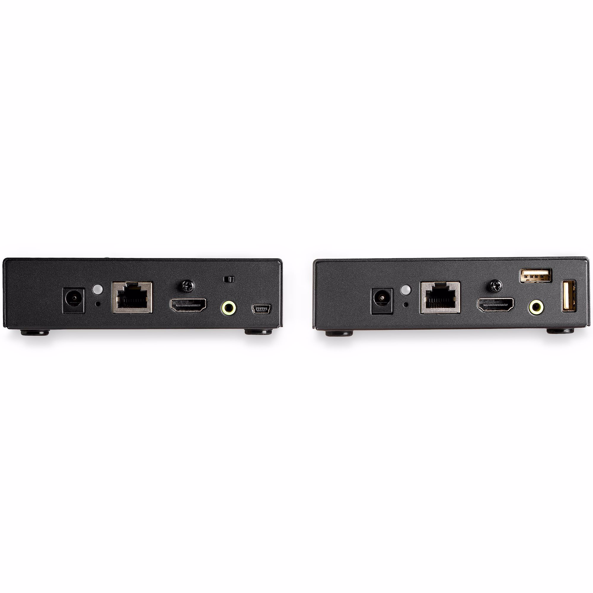 This HDMI KVM extender kit lets you use a keyboard, mouse and monitor to remotely control any computer over your IP-enabled local area network (LAN). Combined with a KVM switch, the KVM console extender can be used with multiple computers. The extender features four USB ports that enable you to connect other USB devices, in addition to your keyboard and mouse.