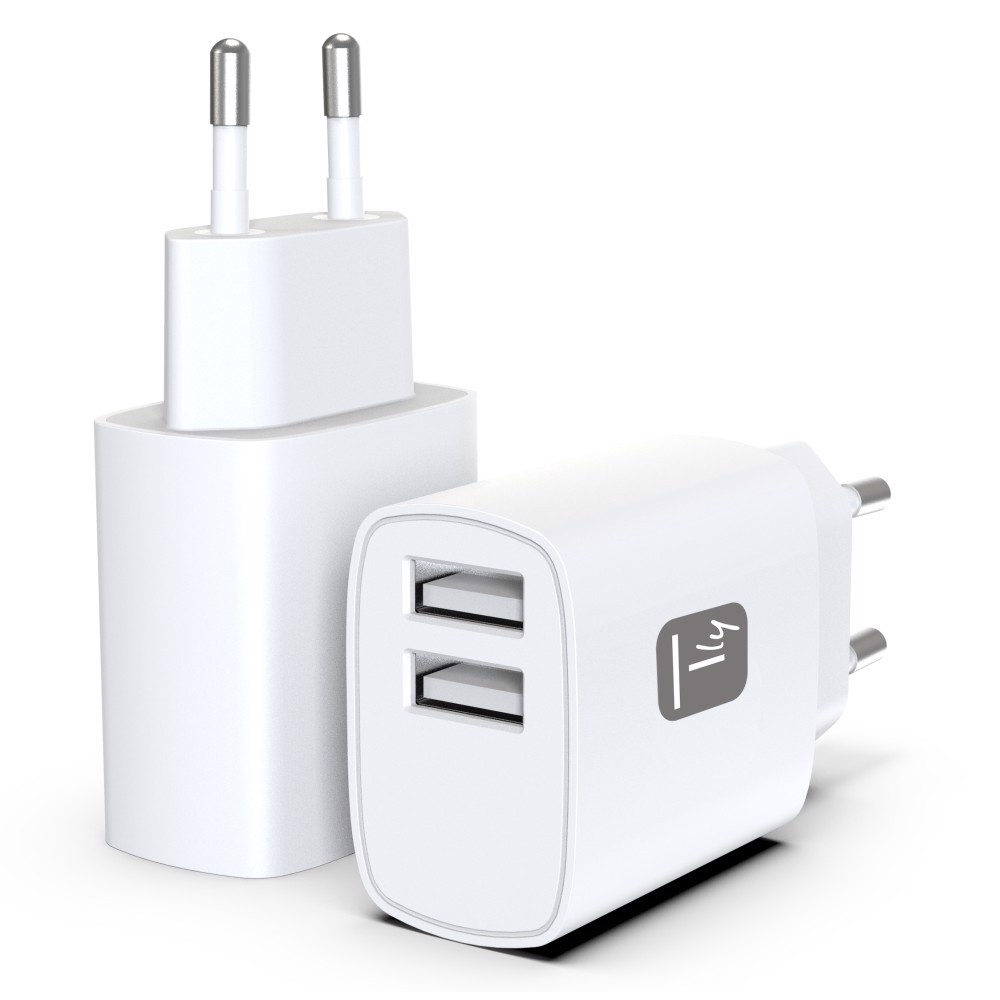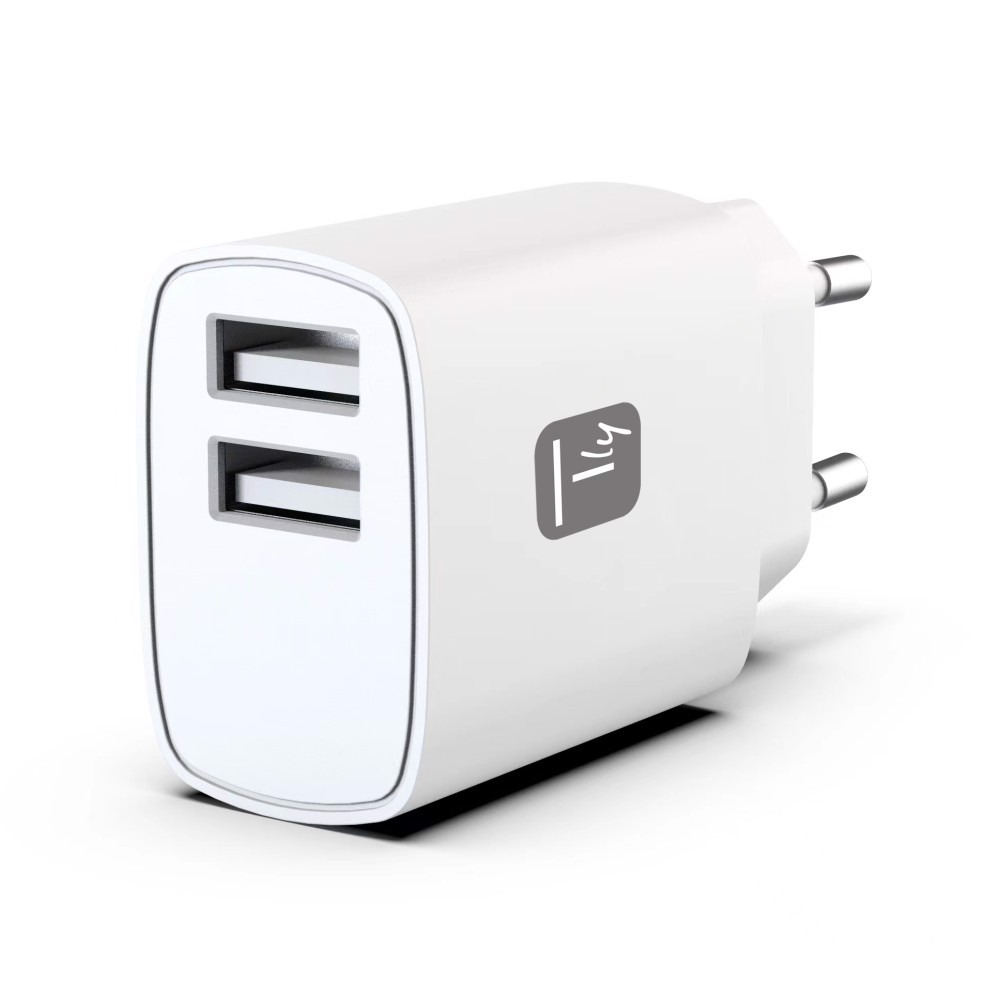 IPW-USB-12W2A is an ultra-compact USB travel charger equipped with two USB-A ports, which allows you to charge two devices simultaneously.