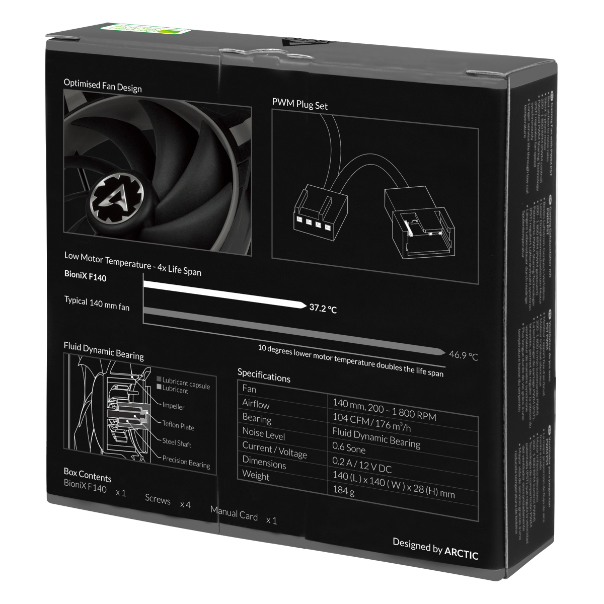 The BioniX F140 has the best airflow to noise ratio. The extreme silent 3-phase motor guarantees long gaming sessions without annoying noise. With a wide range of 200 to 1 800 RPM, the BioniX F140 is controllable with PWM to regulate the fan speed as needed. The optimised fan blade design ensures high pressure and high ventilation for your gaming case to get a higher airflow at lower noise generation. The 3-phase motor with low coil temperature quadruples the life span and we extend the warranty to 10 years.