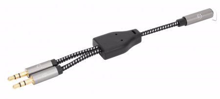 The Manhattan Headset Adapter Cable with Stereo Audio AUX Y-Splitter converts a single 3.5 mm headset plug into separate mic and speaker plugs. It lets you connect your headset to the two individual audio ports on a laptop desktop computer. This Headset Adapter is ideal for common calling applications, such as Skype, Teams or Zoom and in online gaming voice chats with your friends.