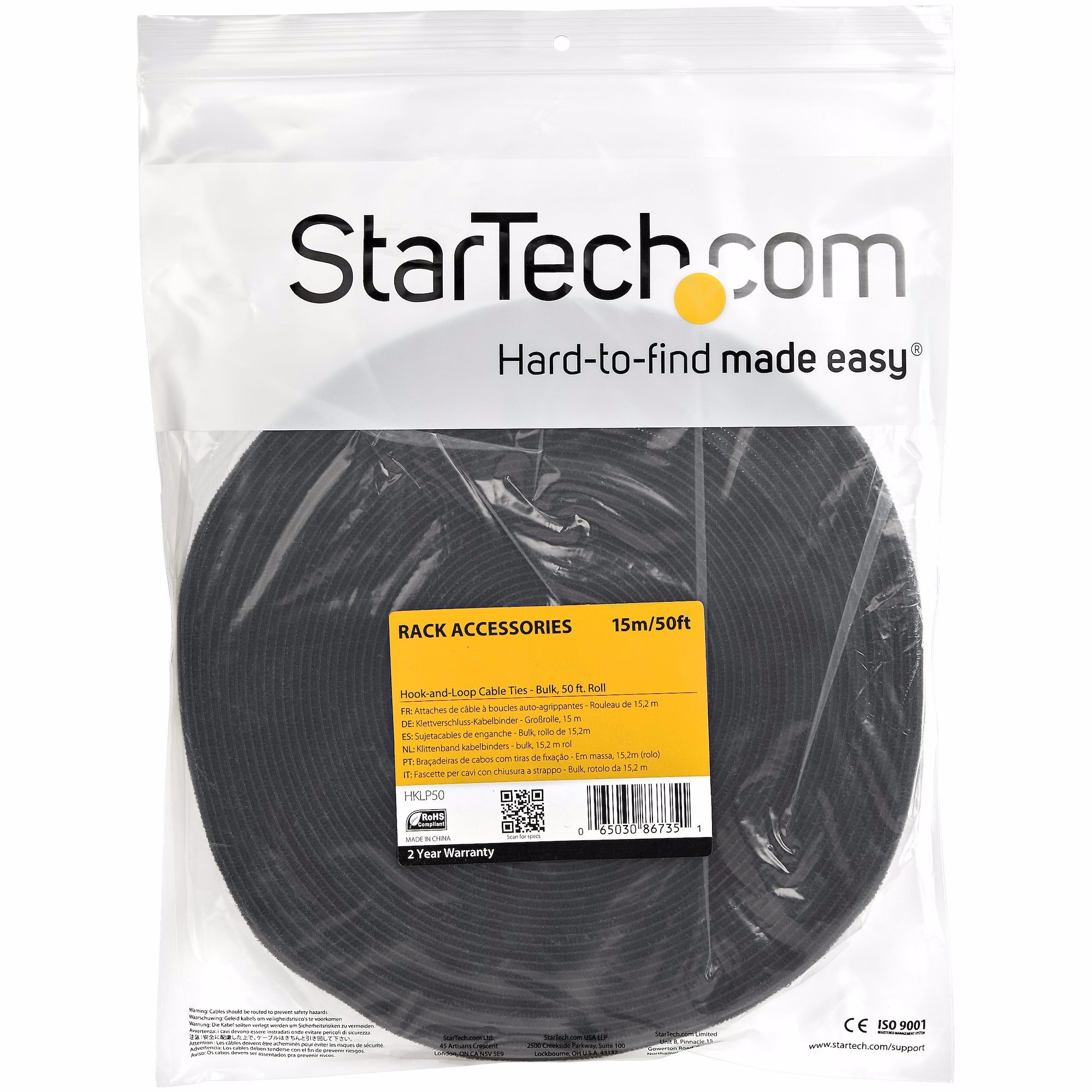 StarTech.com HKLP50, Krog og løkke kabelbinder, Nylon, Sort, -10 - 80 °C, 15200 mm, 19 mm