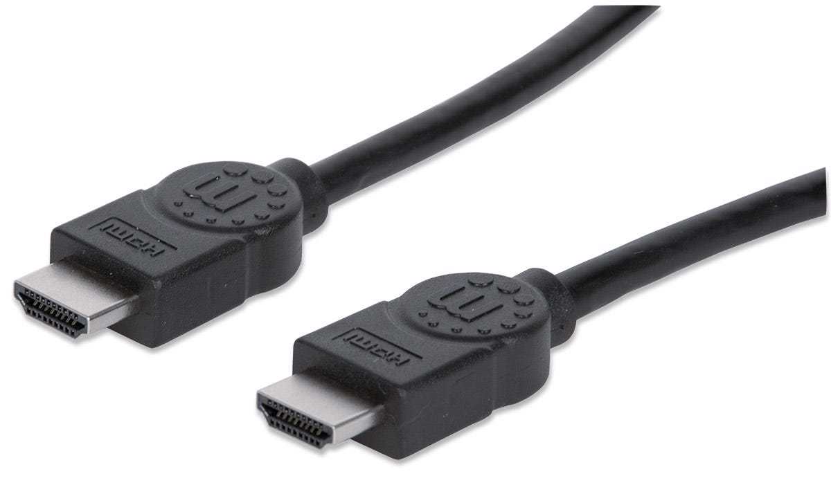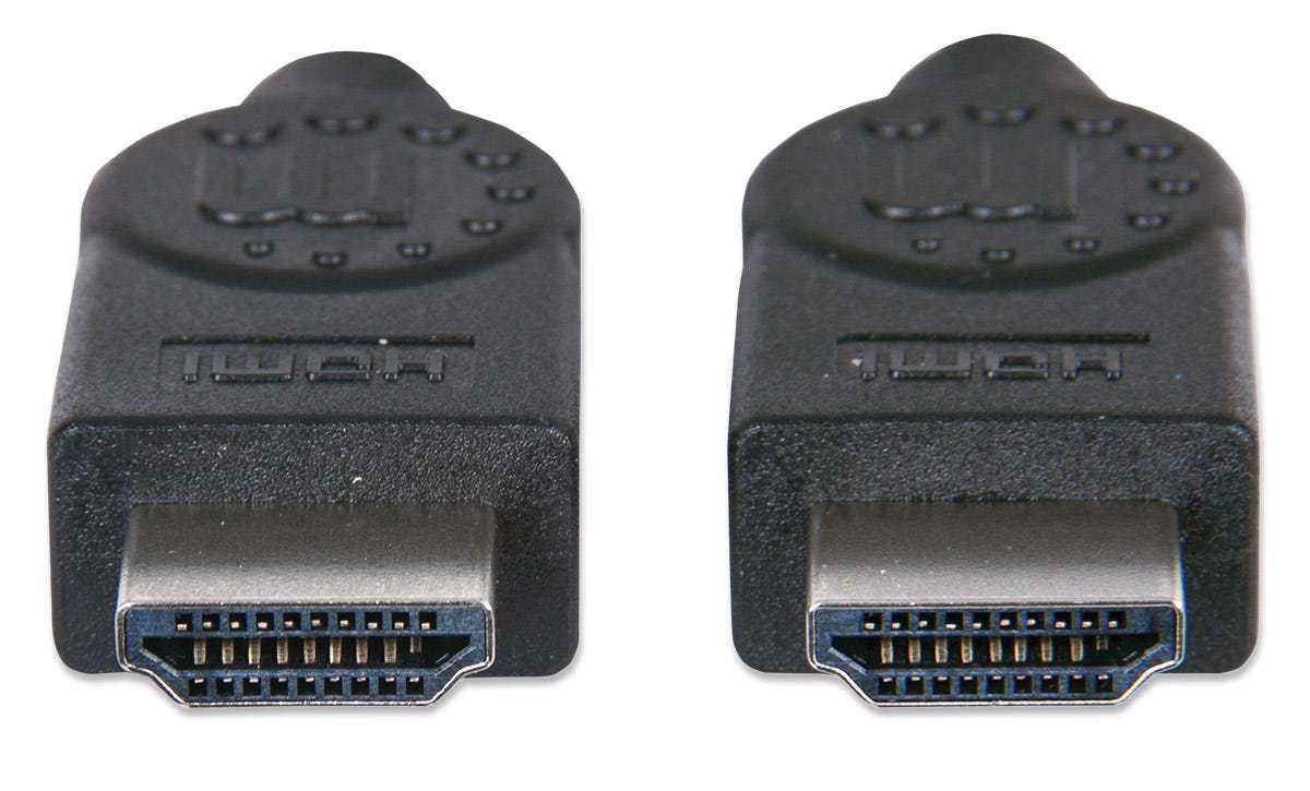 HDMI has become the standard digital connection, delivering the highest-quality audio and video signal over a single cable. The Manhattan High Speed HDMI Cable with Ethernet is designed and carefully constructed to meet the evolving needs of the high-definition marketplace. This shielded cable provides the highest resolution possible at 4K x 2K, an audio return channel and a bandwidth of 10.2 Gigabits per second at 340 MHz. A high-quality cable, it provides ultra-high-definition video and multichannel, digital audio with increased performance characteristics and greater accuracy. Expanded features include Internet connectivity for home entertainment devices using a single HDMI connection. Plus, this cable's unique design makes it easy to handle and shape without worrying about snags and tangles, and it resists cuts and nicks.