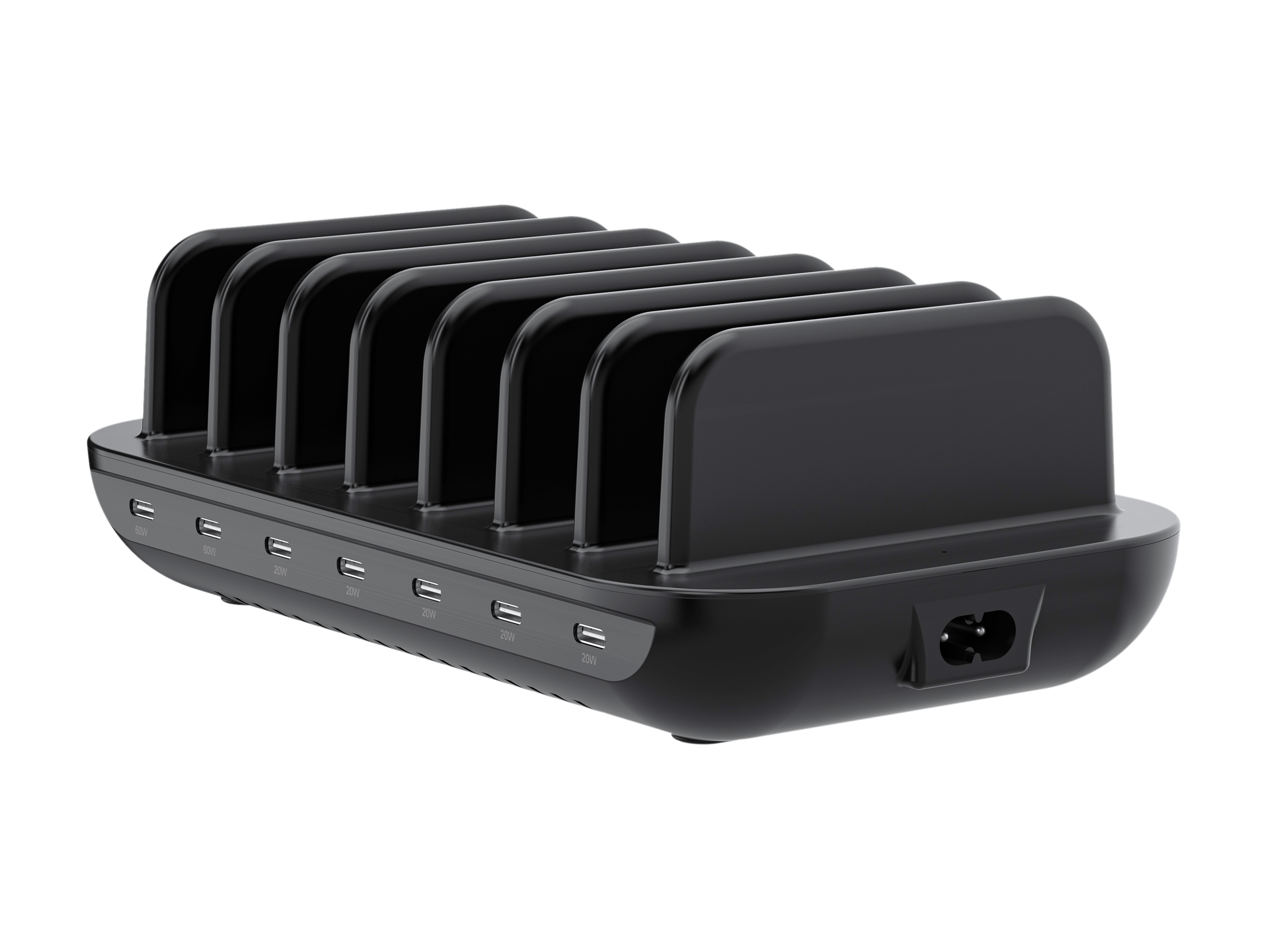 Equipped with seven USB-C ports, this charging station uses USB Power Delivery (PD) 3.0 technology to provide fast and efficient charging for multiple devices at once. Two high-powered USB-C ports deliver up to 60W each, which is ideal for laptops and tablets. The other five USB-C ports offer up to 20W each, making them perfect for smartphones and other mobile devices. With a total output capacity of 160W, it keeps all your devices charged and ready to go.