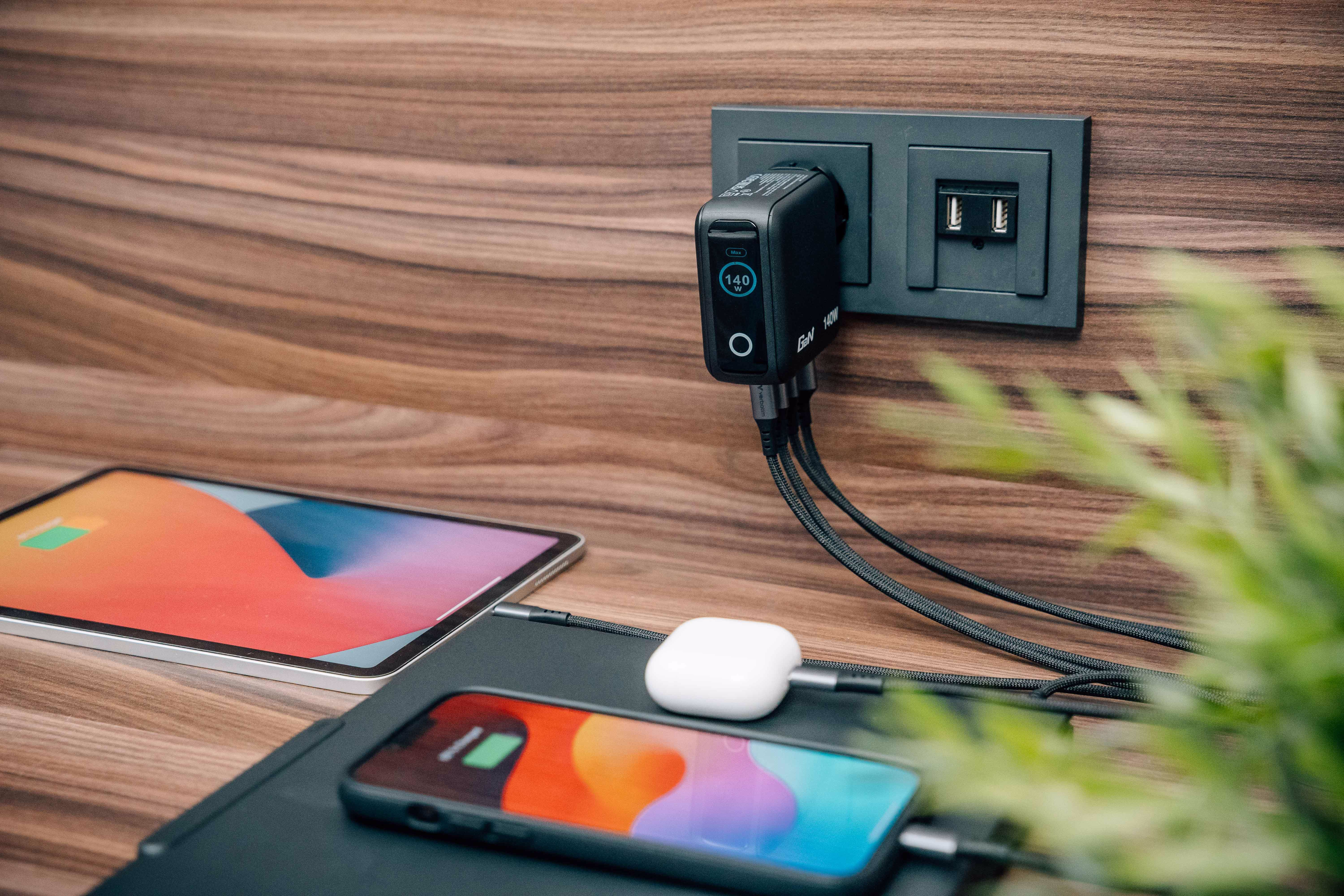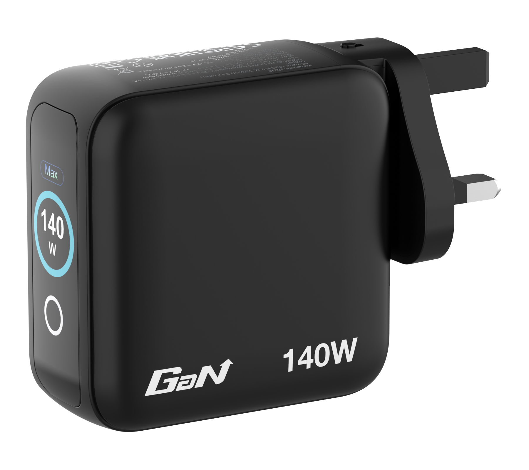 Designed for maximum versatility, this mini GaN wall charger delivers up to 140W total output through its four ports. Power a laptop, tablet, and multiple mobile devices all at once while the TFT display gives instant feedback on each port’s performance. With PPS (Programmable Power Supply) technology, the charger intelligently adjusts output to each connected device for fast, safe, and efficient charging.