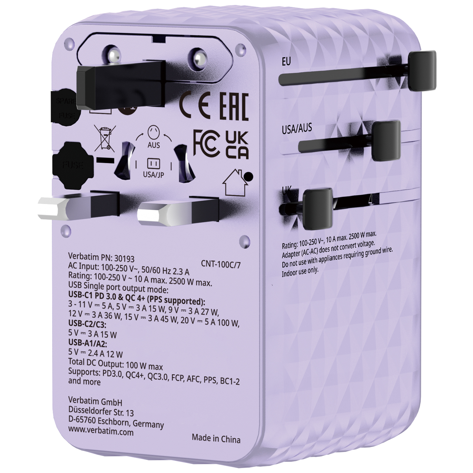 Equipped with 7-in-1 functionality and support for up to 100W output, this adapter has the capacity to charge your entire digital kit. Use the AC sockets for standard plugs, the retractable USB-C cable for quick access, and the four USB ports to top off additional devices. With GaN III technology, you get the same powerful performance with better energy efficiency, a cooler operation, and a smaller footprint – ideal for anyone needing fast, flexible charging across borders.