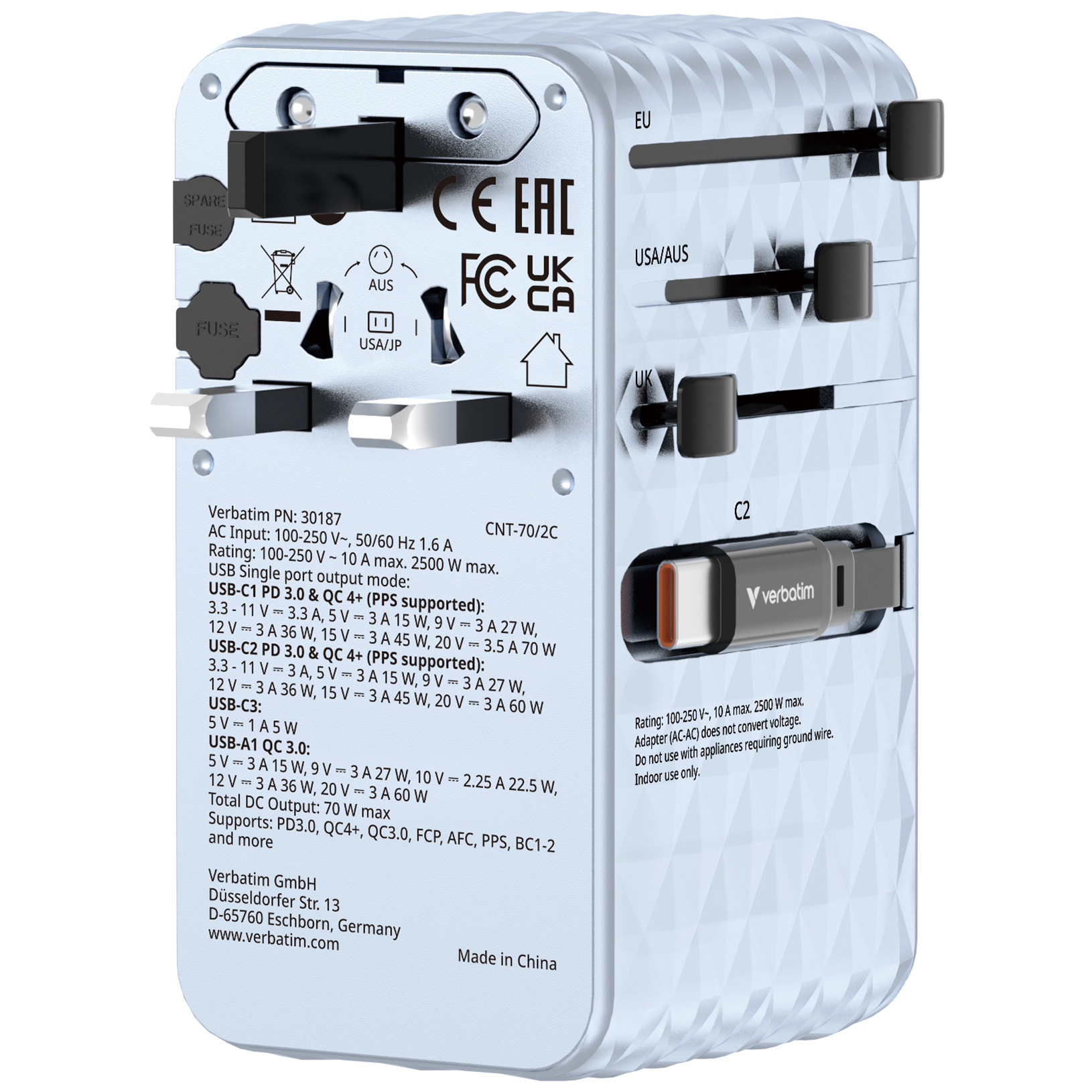 With GaN III technology, the Charge ‘n’ Travel Adapter maximizes performance while minimizing size. GaN (Gallium Nitride) allows for better energy efficiency, less heat generation, and faster charging – making it the ideal solution for today’s high-performance devices. Capable of delivering up to 70W total output, it easily powers everything from laptops and tablets to smartphones and Bluetooth speakers. The intelligent design supports up to six simultaneous connections without compromising on speed or safety.
