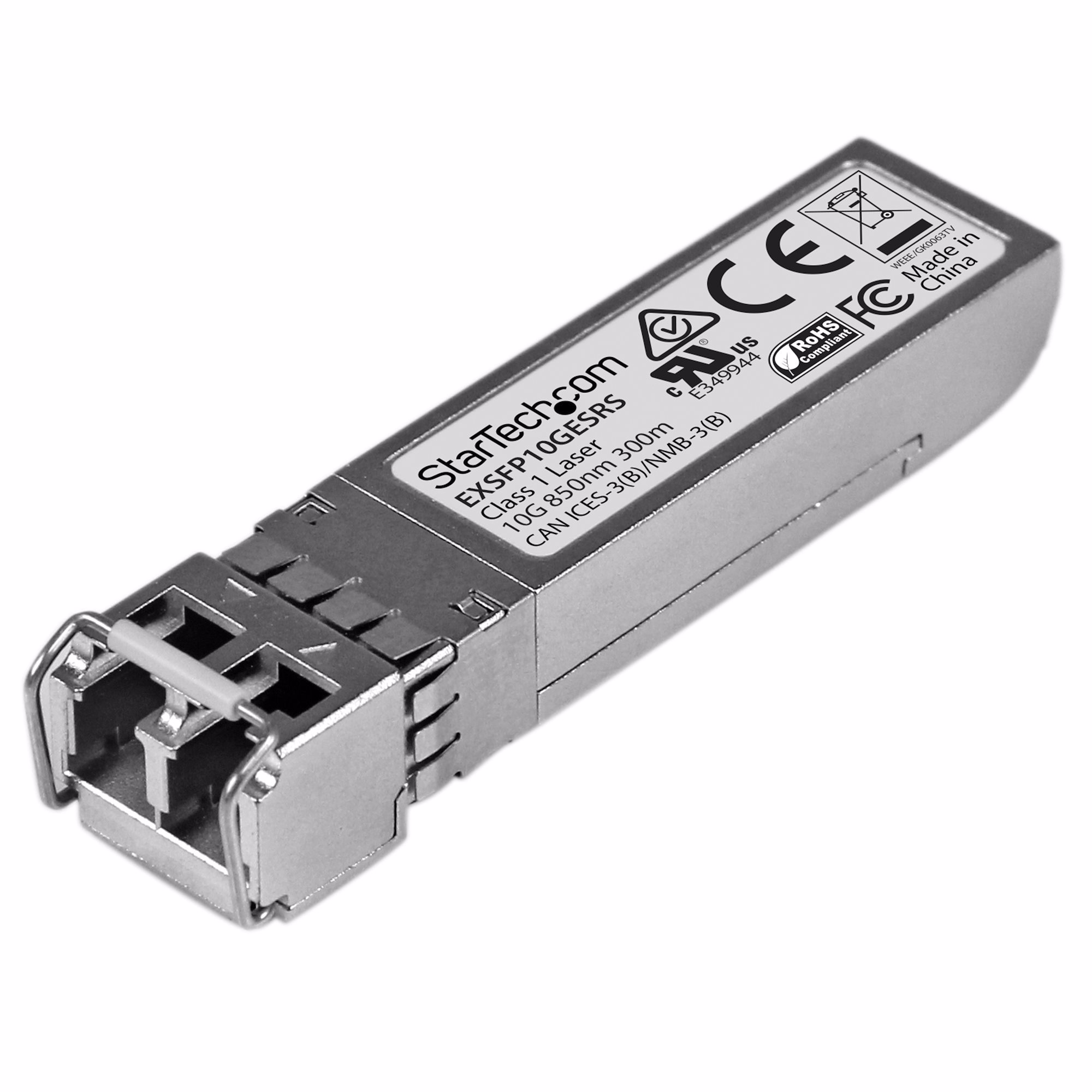 The EXSFP10GESRS is a Juniper EX-SFP-10GE-SR compatible fiber transceiver module that has been designed, programmed and tested to work with Juniper® brand switches and routers. It delivers dependable 10GbE connectivity over fiber cable, for 10GBASE-SR compliant networks, with a maximum distance of up to 300 m (984 ft).