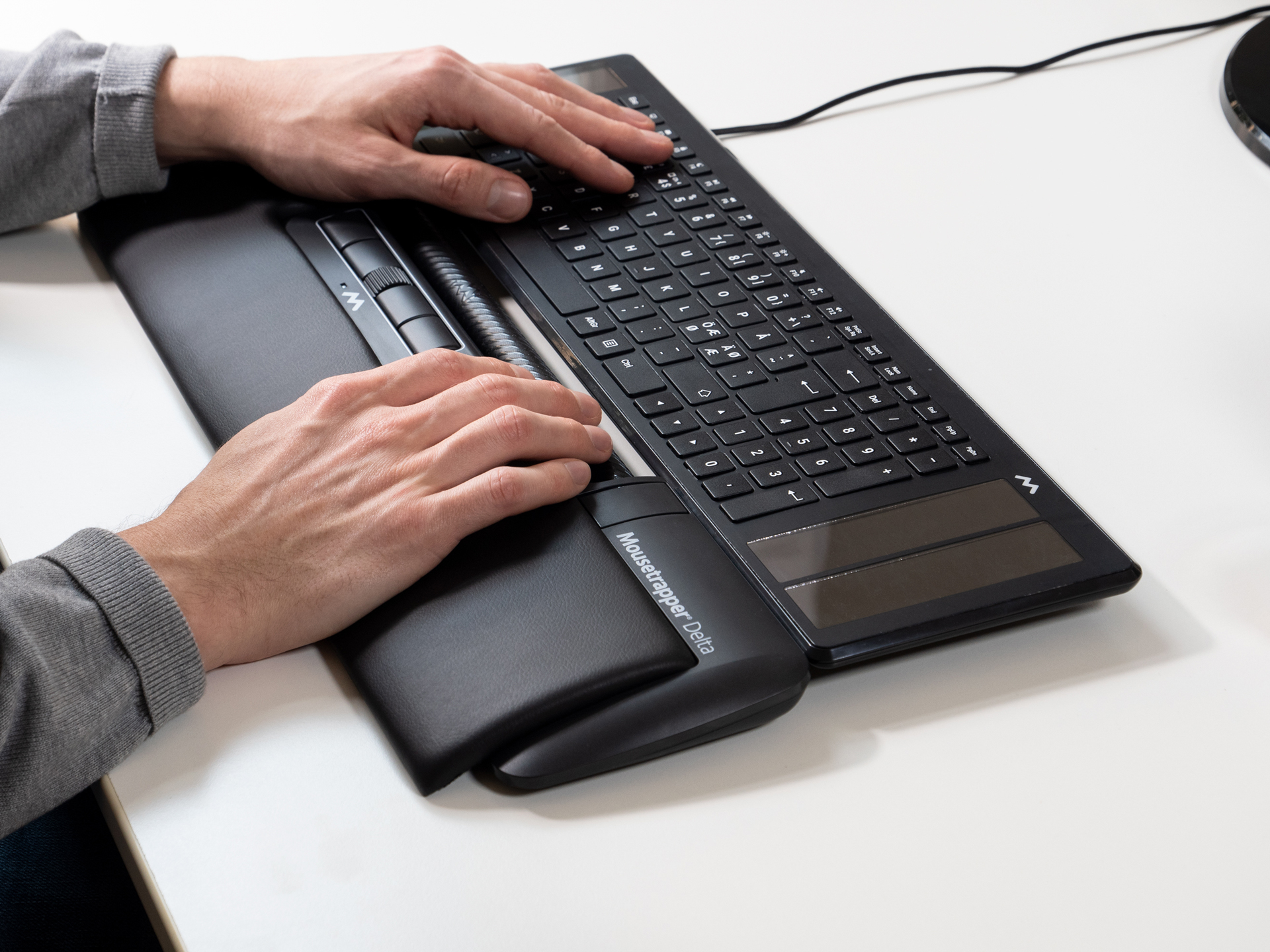 Mousetrapper Delta adds a new dimension to Mousetrapper’s wide range of centred ergonomic mouse solutions. Its wide, unique carbon fibre Control Bar has a soft texture that enables you to work precisely and efficiently. The length has been adapted to make the Control Bar easily accessible when you use the Mousetrapper Type keyboard. The 4000 cpi resolution makes scrolling, clicking and zooming easy, and gives you an outstandingly precise feel while working. The 7 programmable keys offer you the freedom to create personal shortcuts, easy to be changed with the free MT Keys software. Delta is fully made out of recycled plastic and has a USB hub to charge other devices.