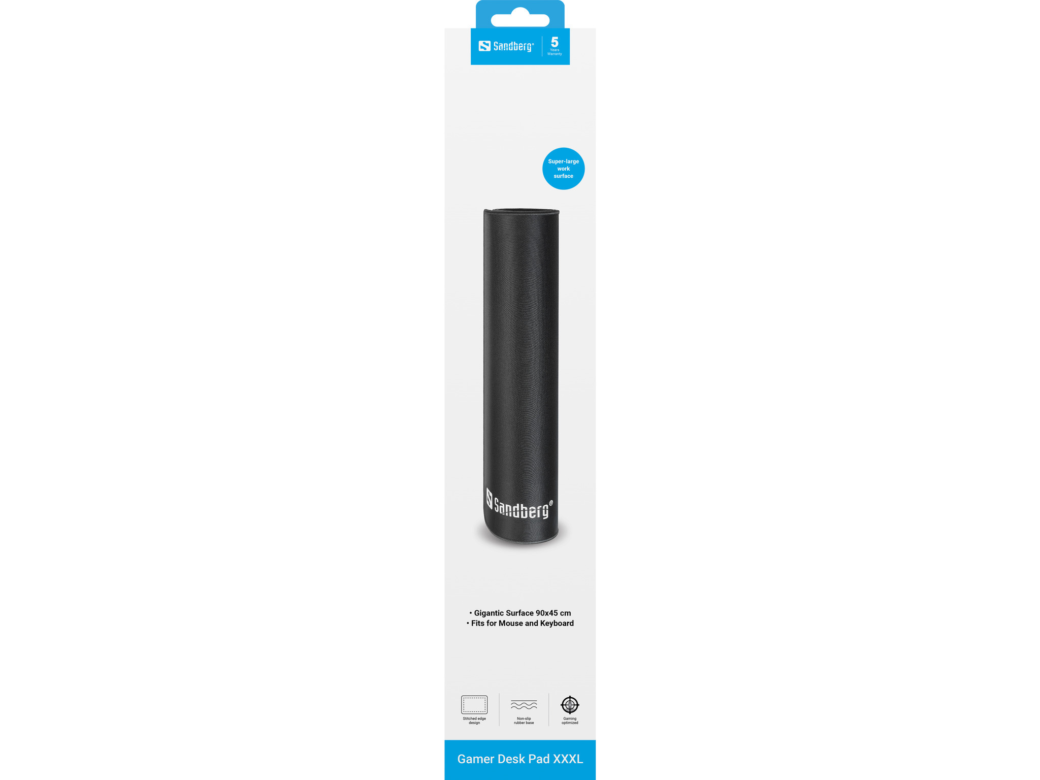 Med Sandberg Gamer Desk Pad XXXL som museunderlag sikrer den store overflade dig høj præcision i dine spil. Takket være en skridsikker underside ligger musemåtten helt fast, også ved hurtige musebevægelser.