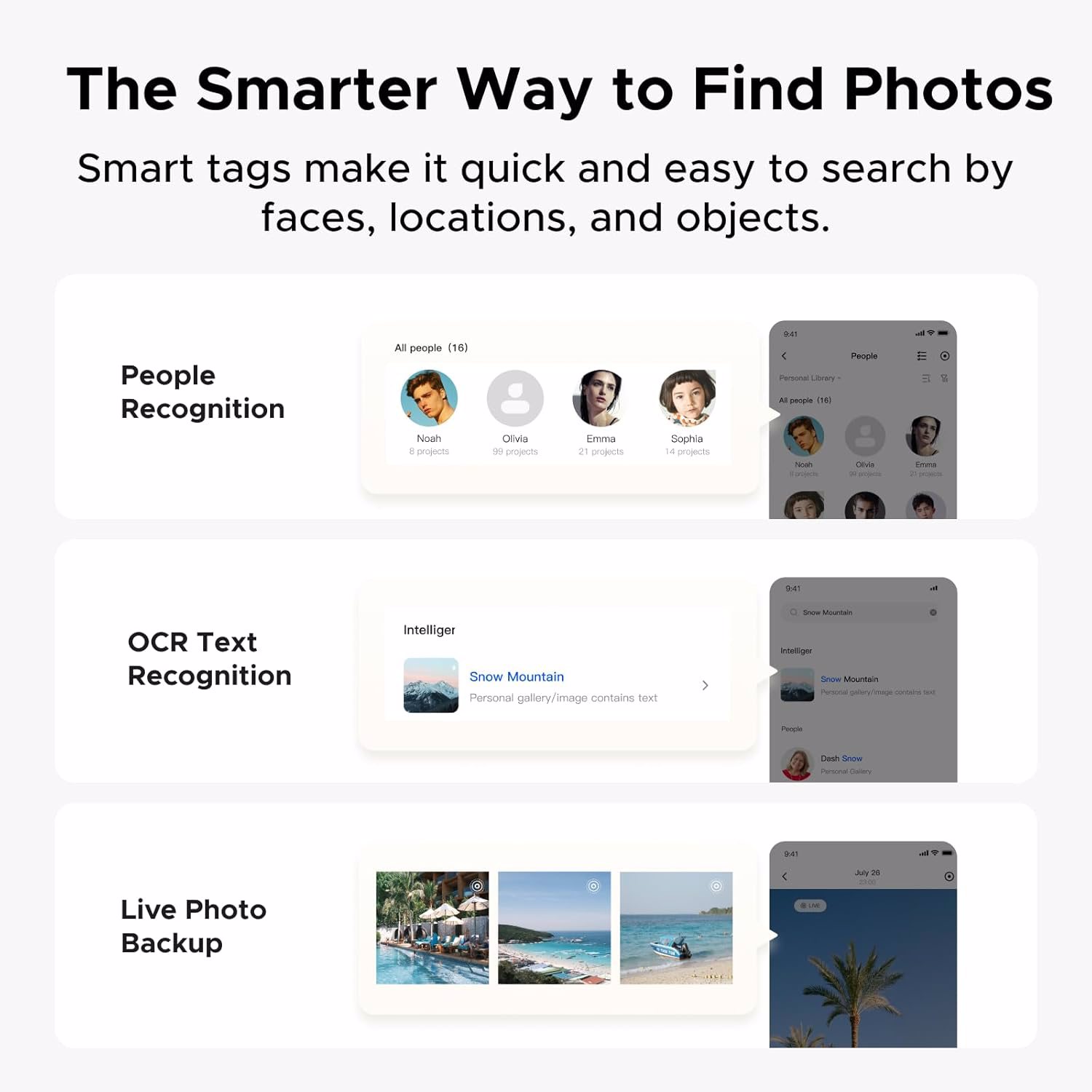 Let AI Better Organize Your Memories: UGREEN NAS uses AI to tag faces, locations, texts, and objects—so you can effortlessly find any photo by searching for who or what's in it in seconds. It also automatically finds and deletes similar or duplicate photo, backs up live photos and allows you to share them with your friends or family with just one tap. Everything stays effortlessly organized, powered by intelligent tagging and recognition.