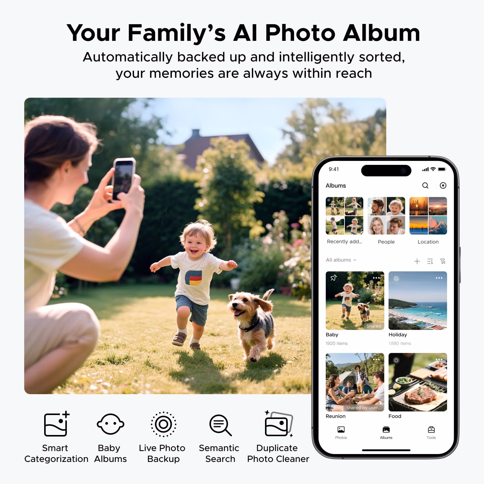 AI Album Recognition & Classification: The 4 bay nas supports real-time photo backups and intelligent album management including semantic search, custom learning, recognition of people, object, pet, similar photo. Thus, you can classify and find your photos easily. What's more, it can also remove duplicate photos as desired.