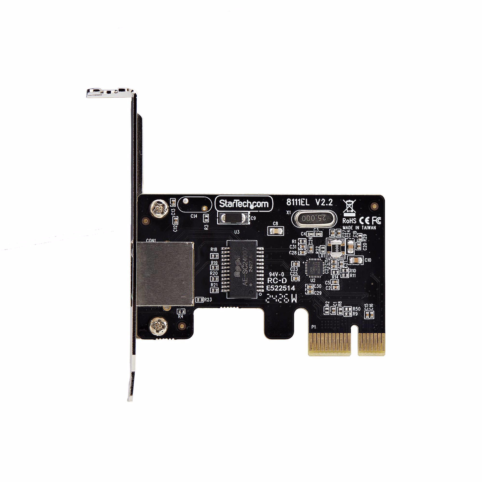 This 1-port network interface card is plug-and-play compatible, with drivers that auto-install on major operating systems such as Windows, Windows Server, and Linux. It is compatible with Intel and AMD hardware platforms equipped with PCI Express x1, x2, x4, x8, or x16 slots.