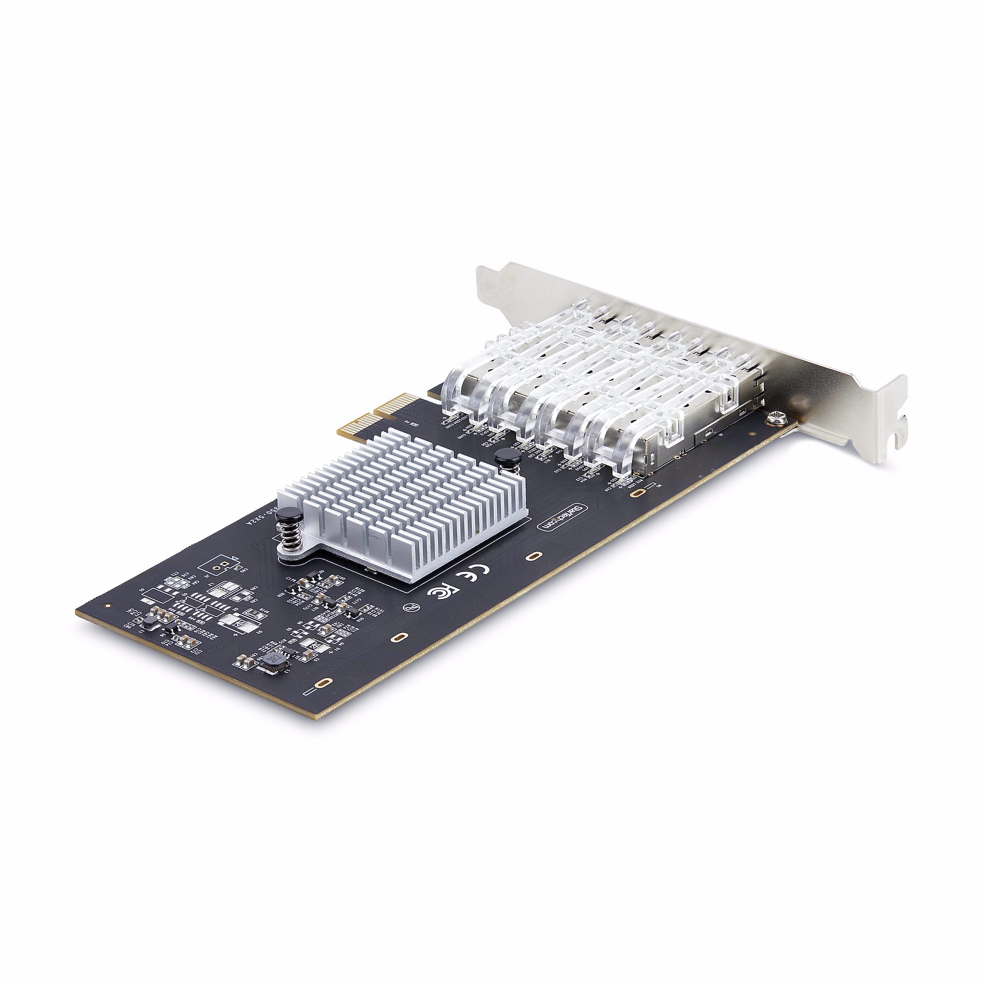 Add up to four 1GbE SFP modules to a PCI Express (PCIe) 2.0 x2 (or higher) slot in an IT Administrator workstation or server backplane, using this 4-Port SFP Network Controller.