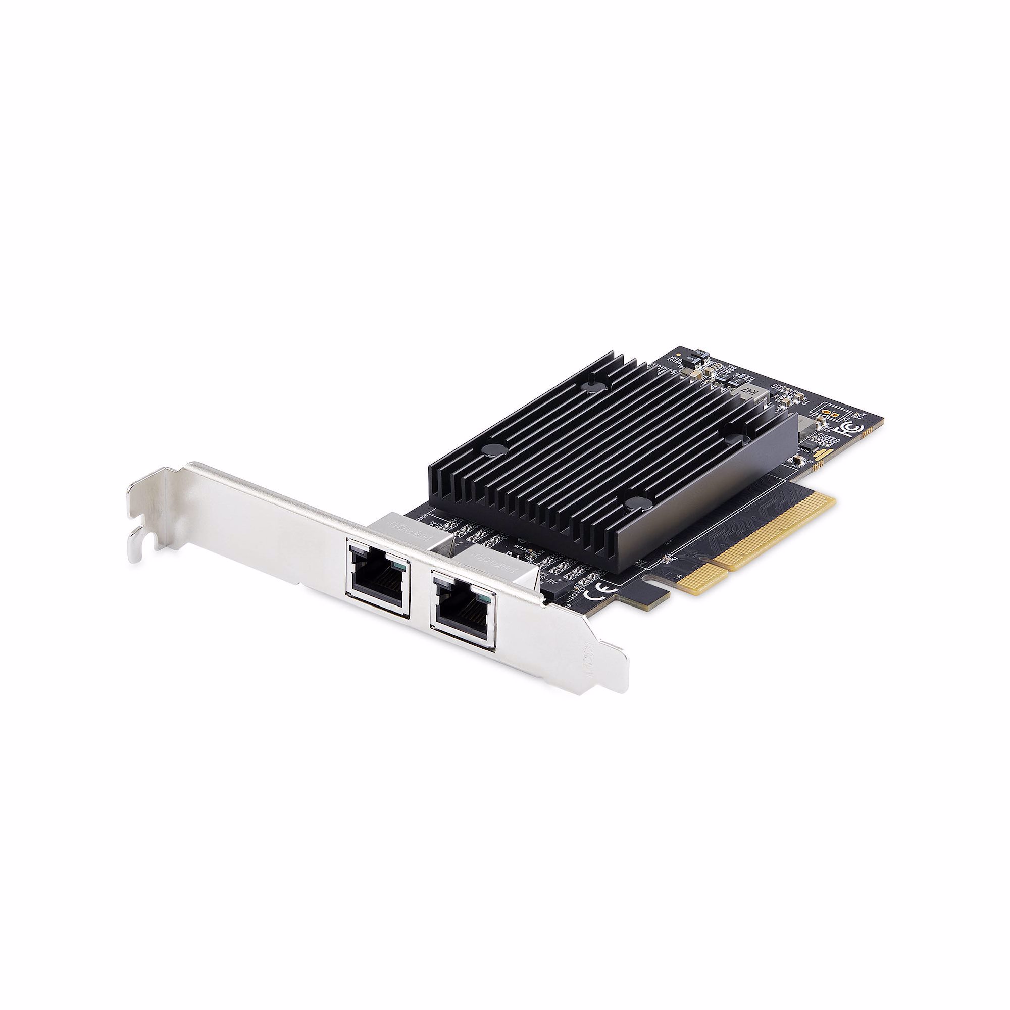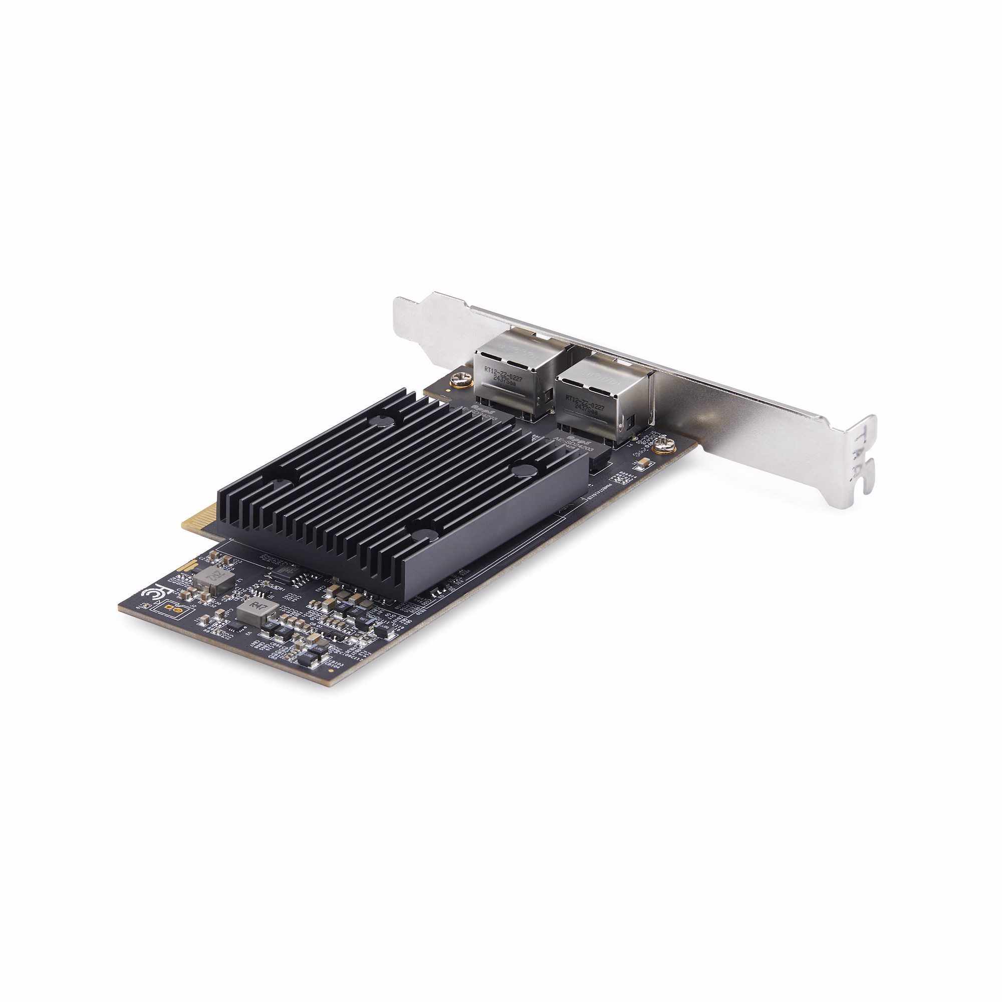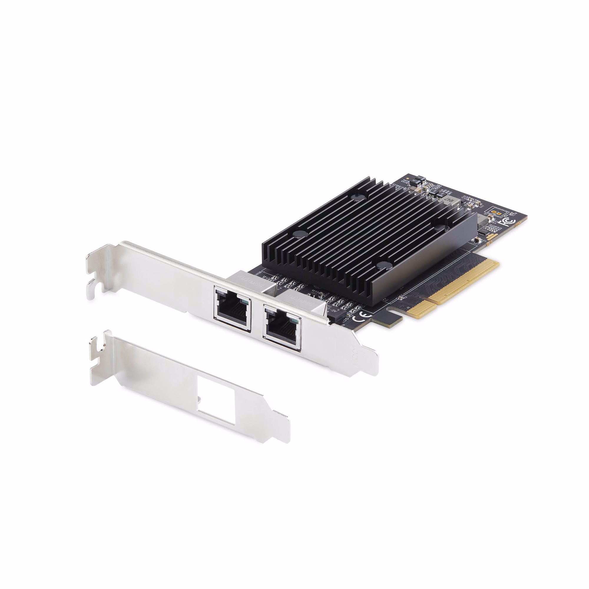 This PCIe network card makes it easy to add two 10GBase-T ports to your server or workstation, providing an affordable solution for high-bandwidth applications. It supports 10GbE over Cat 6 cabling up to 55 meters and Cat 6A cabling up to 100 meters.
