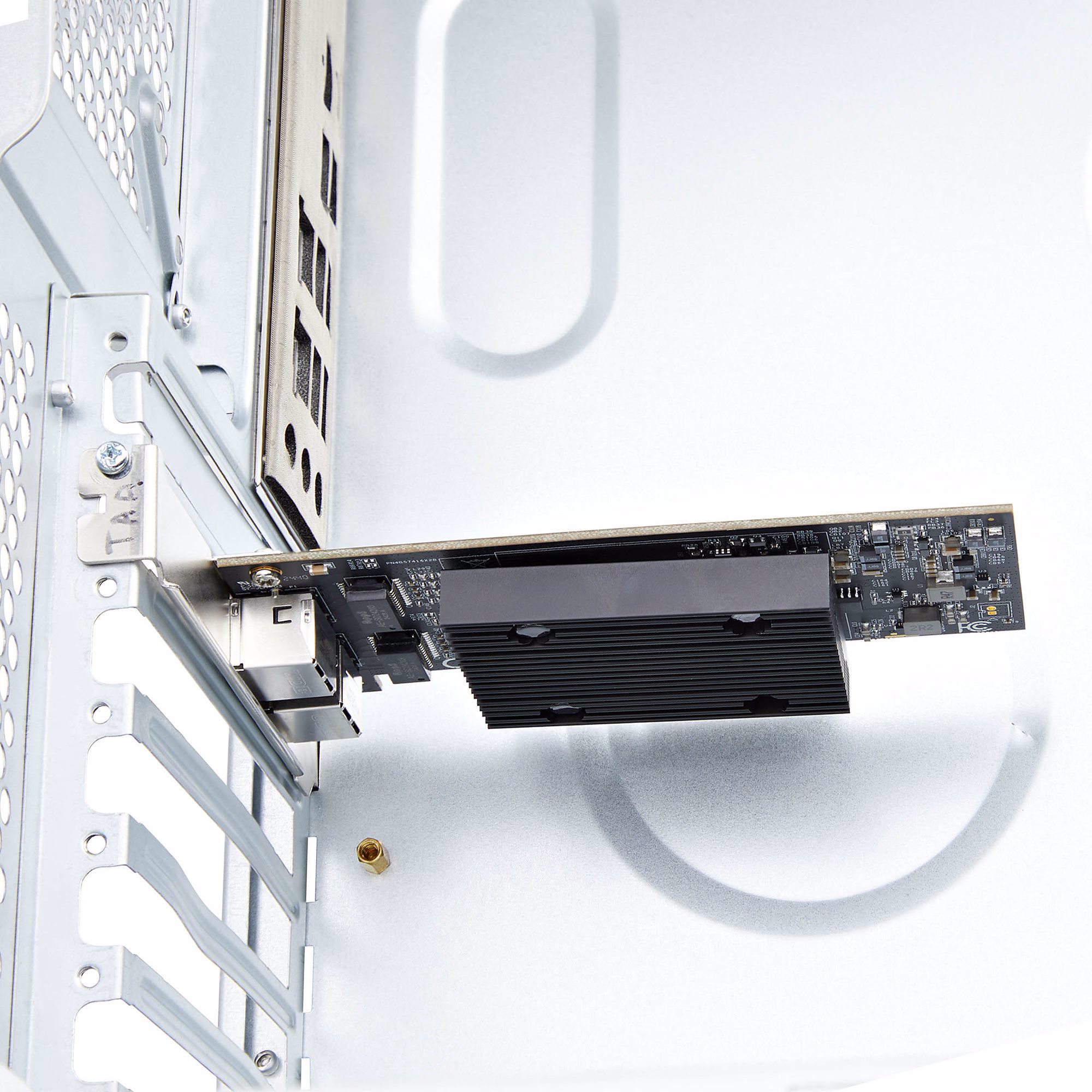 Add two 10 Gigabit Ethernet ports to a PC via copper cable using an available PCIe slot.