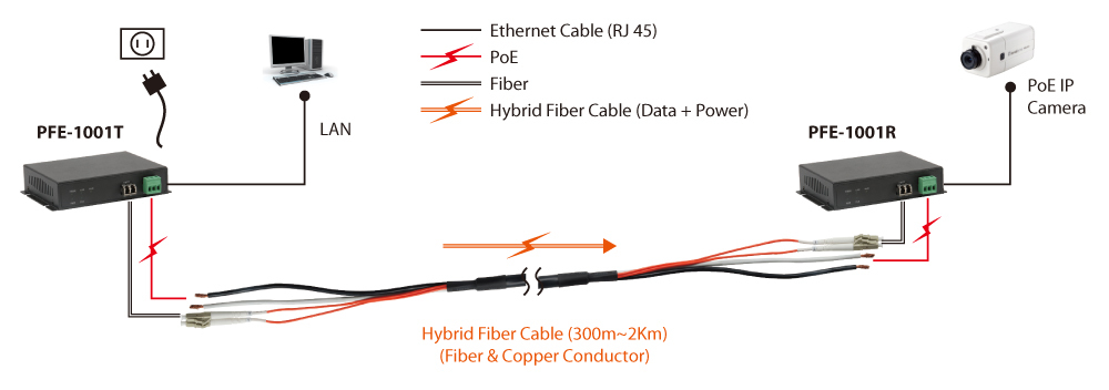 - Extend data and power up to 2km via a single Hybrid Fiber Cable