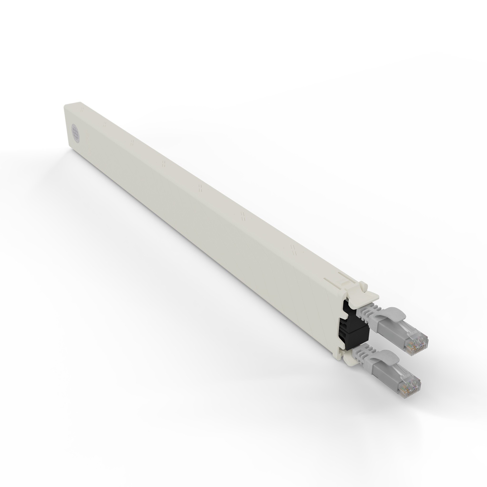 Skab din egen patchbox.one ved at fylde din Frame med op til 24 kabelcassettes. Du kan vælge mellem forskellige kabeltyper, farver, stiktyper og kabellængder. Med det modulære system kan du udskifte cassettes på få sekunder og nemt tilpasse racket efter behov. Cat.6a-kablerne i cassettes opfylder ISO-standarderne, og du kan forsyne enheder med PoE (STP) og PoE++ (UTP) eller vælge de mest fleksible og bøjningsfølsomme fiberoptiske kabler, der findes, fremstillet af Corning® ClearCurve® Fiber.