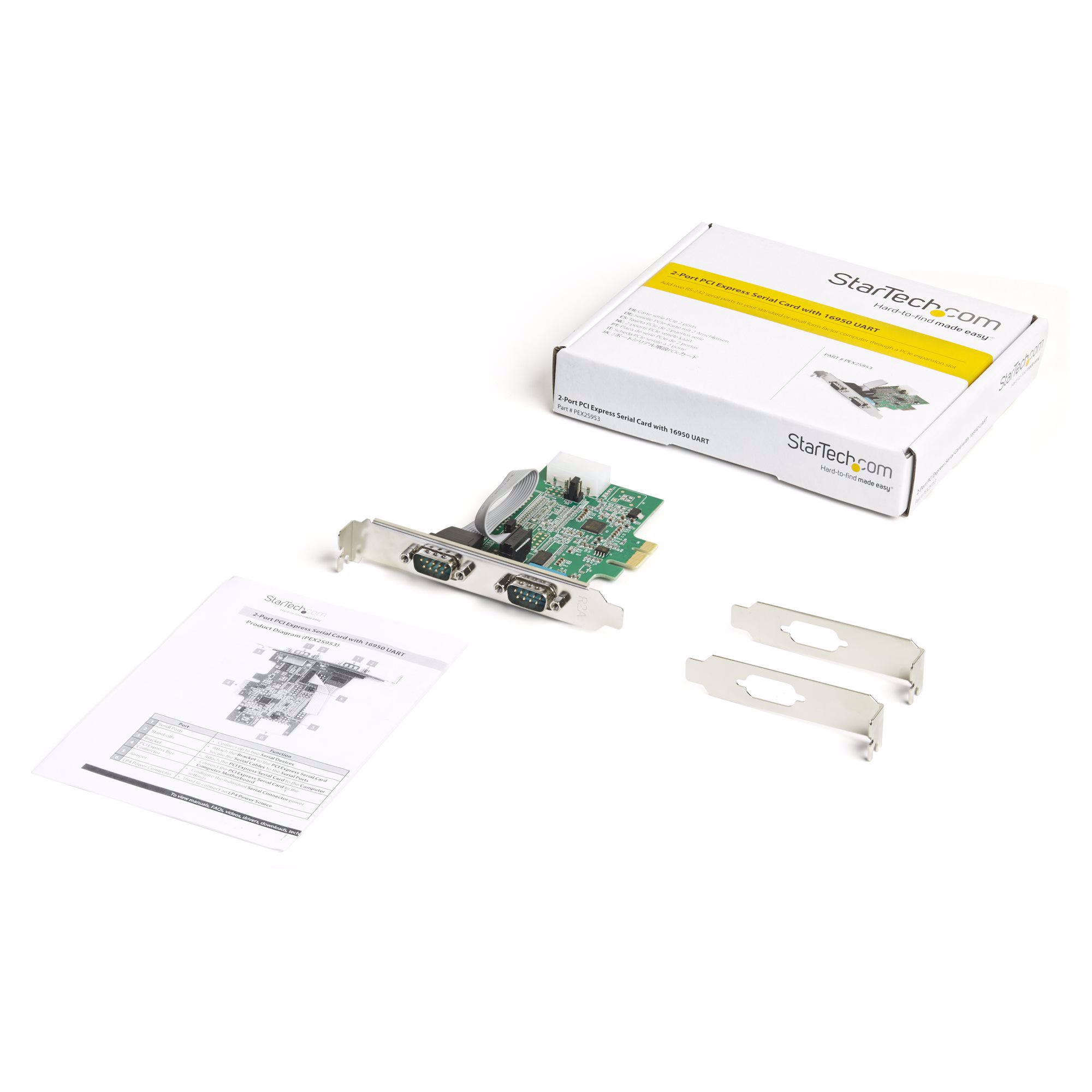 With broad OS support, including for Windows and Linux, this 2 port PCI E serial card is easy to integrate into mixed environments. The card comes pre-configured with a full-profile bracket, and includes optional low-profile brackets, so installation is easy regardless of the case form factor. This card is a direct replacement for PEX2S952 .