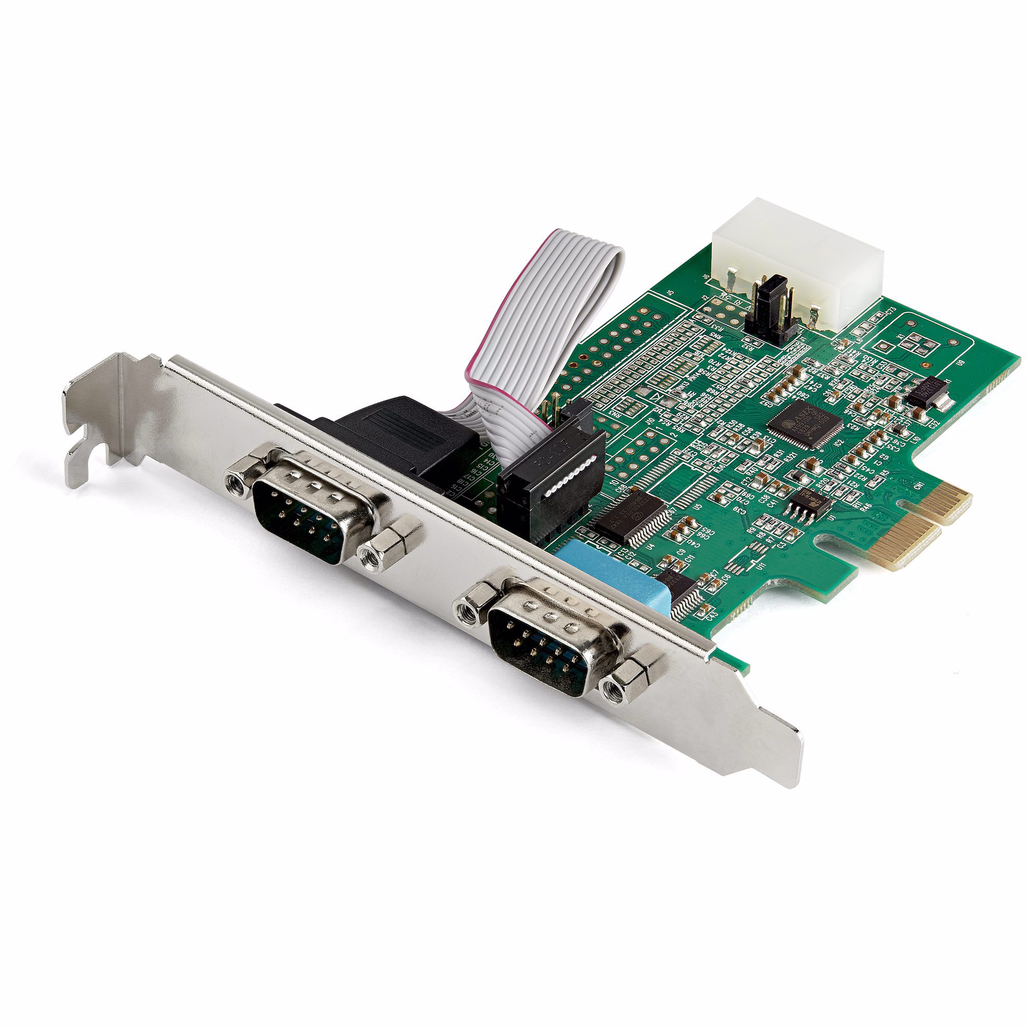 This multiport PCI Express RS232 serial adapter card lets you add two RS232 (DB9) serial ports to your computer through a PCI Express (PCIe) slot, as if they were native serial ports. The dual port PCIe serial card enables you to interact with serial devices, such as card readers, printers, PIN pads, and modems, at speeds of up to 921.6Kbps.