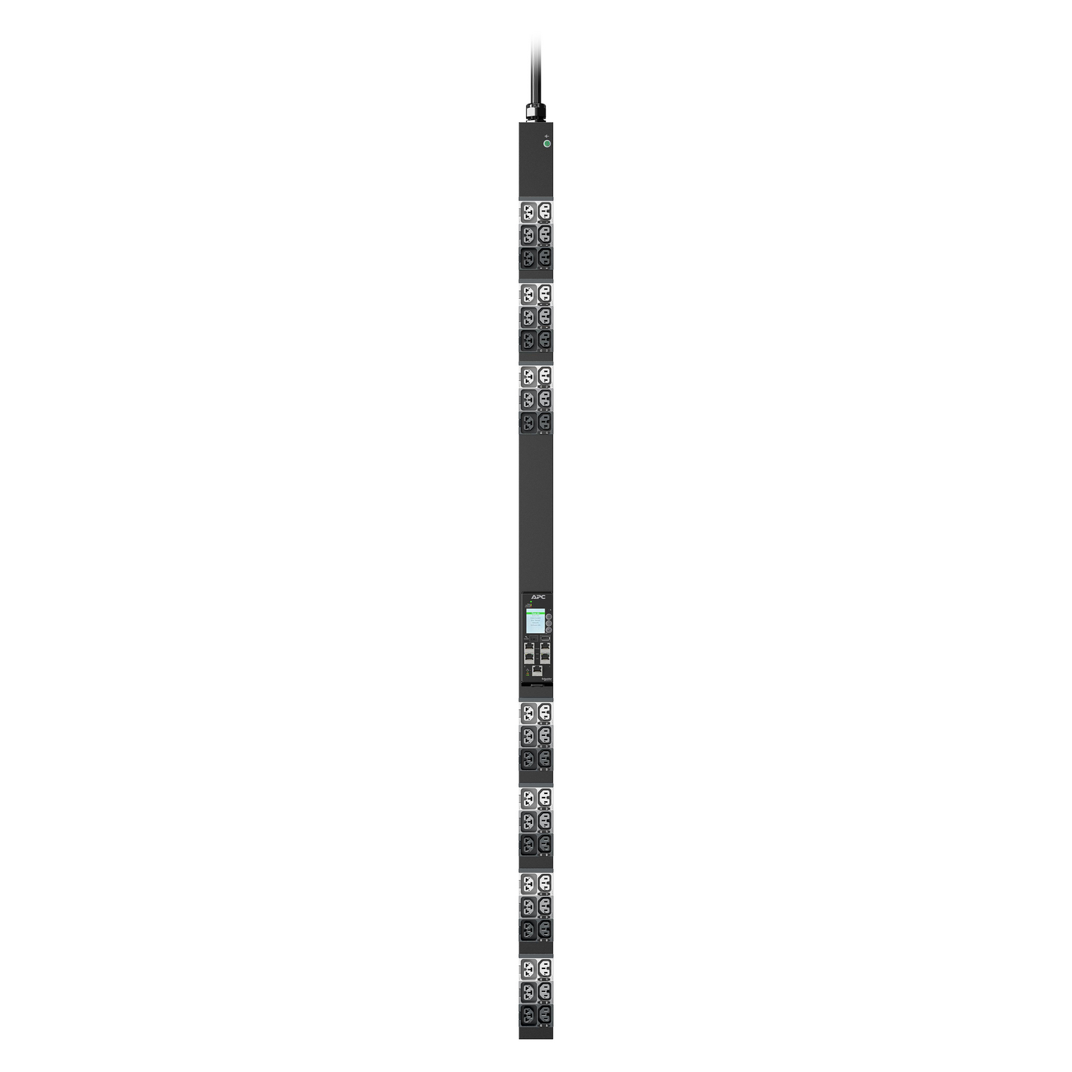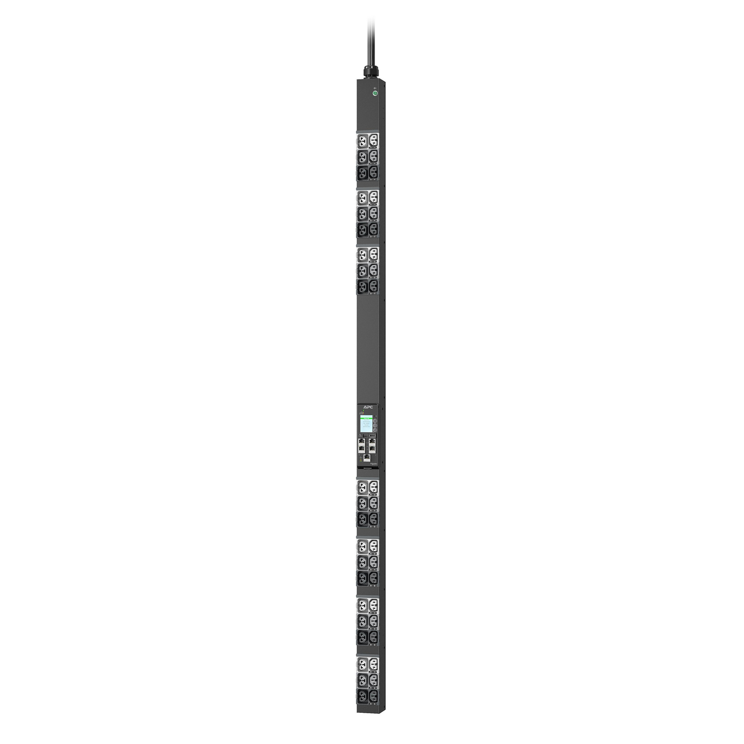 APC NetShelter Rack PDU Advanced (11K Series) provides reliable power distribution to IT equipment within server and/or networking racks. PDU level power metering provides power visibility and notification of potential overload. 4-in-1 combination outlets which can be used as either C13, C19, C15, or C21 outlets provide unparalleled deployment flexibility. Maximum outlet density with 42 outlets in a 2.2 in. (5.6 cm) wide form factor allows for more equipment in the rack. Outlets on the PDUs are color coded and labeled by breaker. Live Swap the NMC3 to minimize downtime in the unlikely event of an NMC power event. The rack PDU integrates with EcoStruxure IT through an NMC3 and can be accessed and configured via web, SNMP, and command line interface (CLI). A 10-foot (3-meter) input cord makes it easier for the PDU to reach the power supply. Rated to operate up to 60 C (140 F) at full load ensures reliability and availability even in today's high-density deployments. One gigabit Ethernet/network port (10/100/1000) enhances and standardizes network connectivity. Two link ports are available to cascade to up to 32 PDUs, with a network port sharing (NPS) feature to enable power sharing between Rack PDUs in the cascading group. Track or bill power usage confidently with 1% metering accuracy. Two environmental sensor ports allow for optional sensors (sold separately) to be connected. For data center deployments across multiple regions, these PDUs have the following certifications: UL, CE, CSA, UKCA, Nemiko, PSE, KC, China RoHS, RCM, and CMIM. This model’s input power cord is IEC-309 20 A 3P+N+PE and features 21 count C13/C15/C19/C21 combo outlets and 21 count C13/C15 outlets.