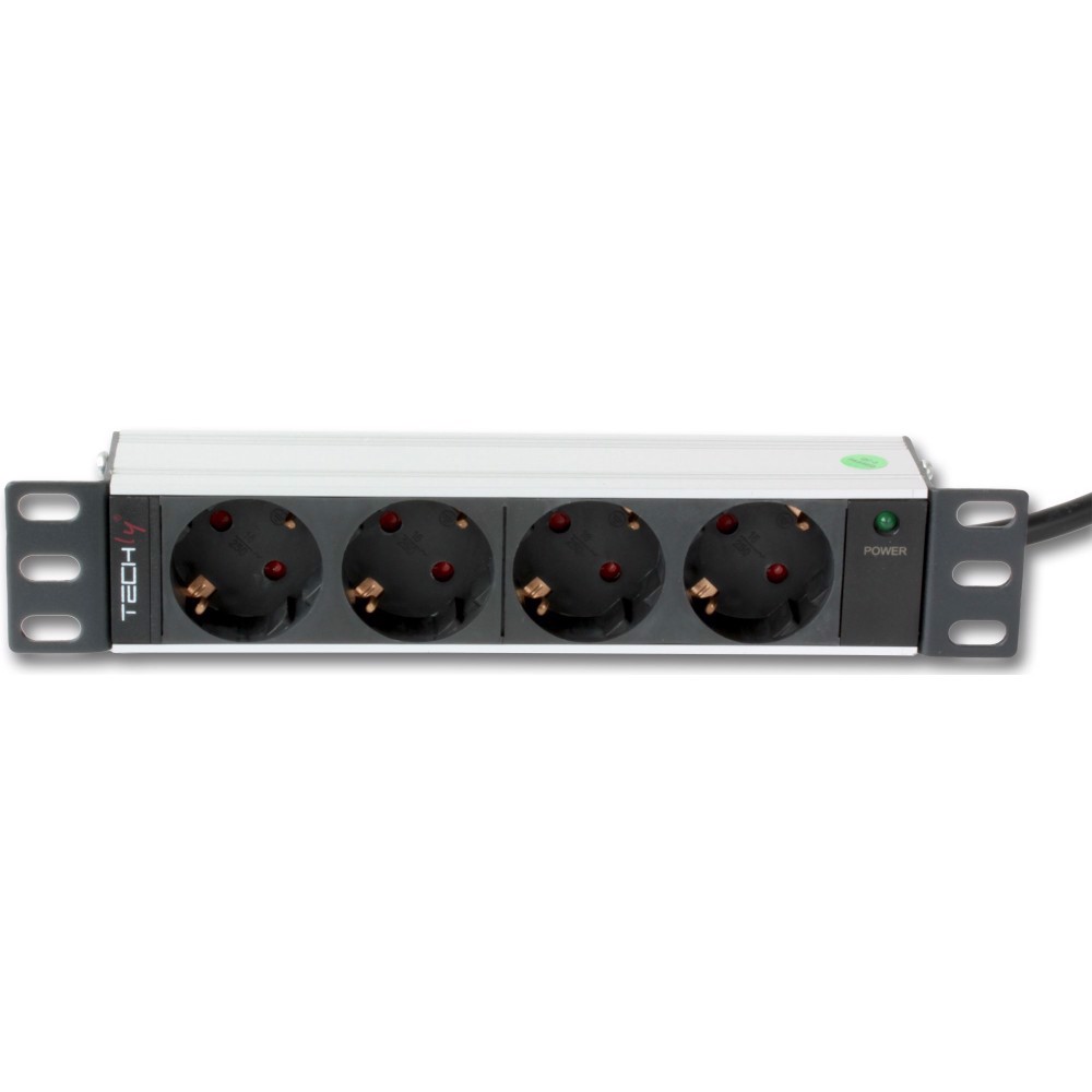 Techly I-CASE M10-4D strømforsyningsenhed (PDU) 4 AC stikkontakt(er) 1U Sort, Sølv
