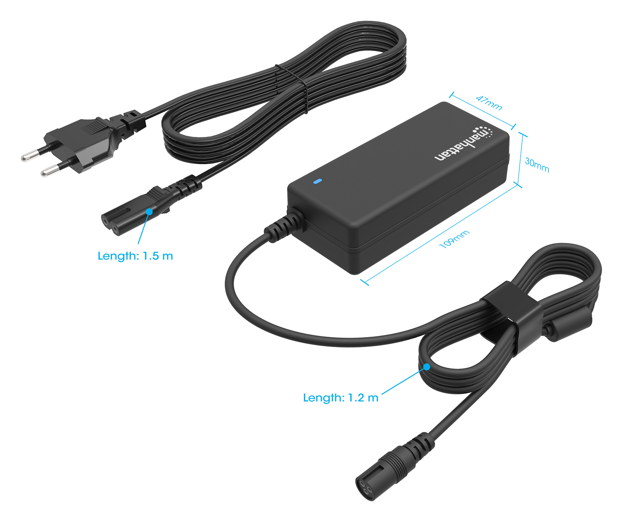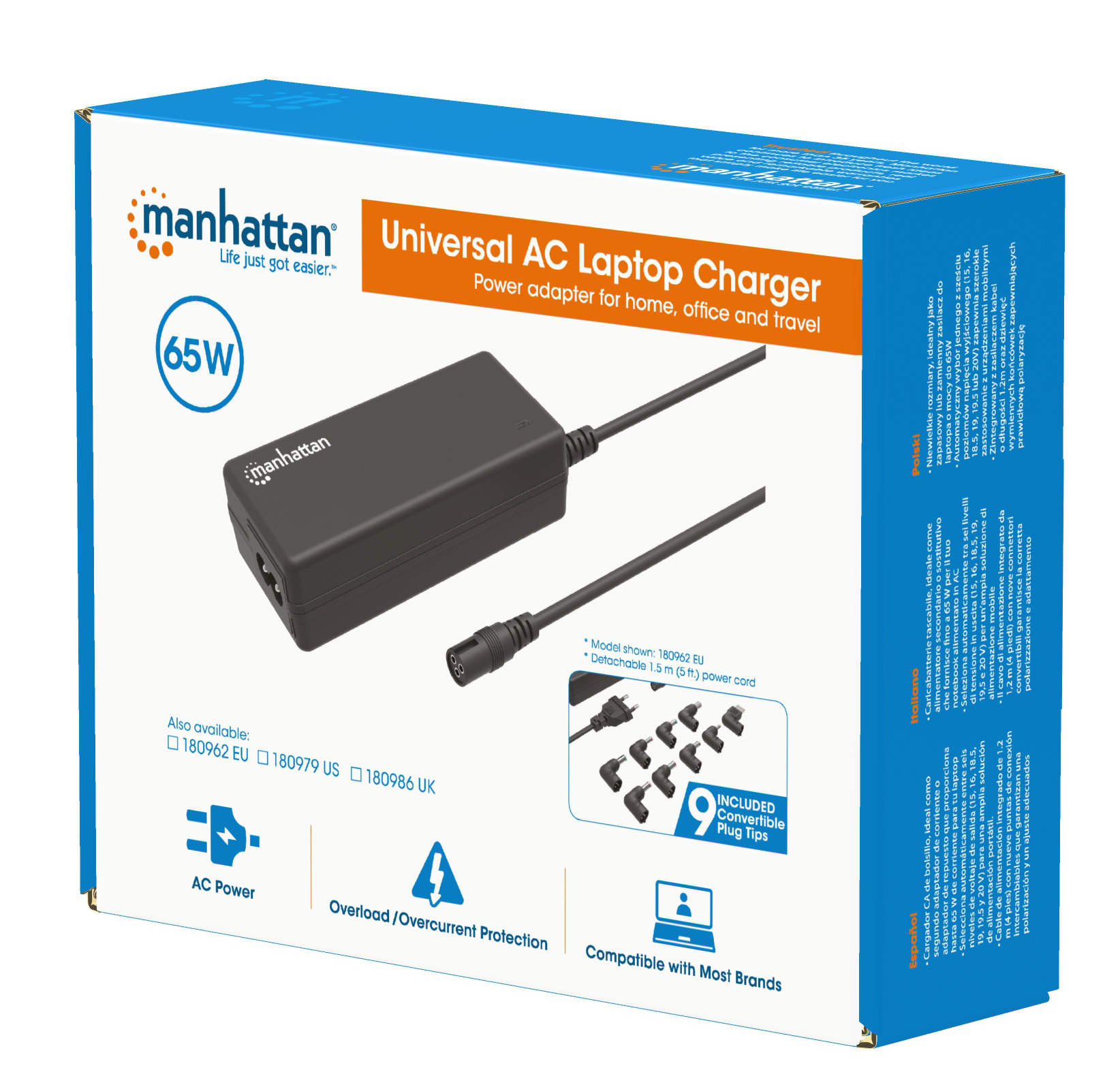Designed to be the perfect secondary power adapter for your AC-powered notebook, the Manhattan laptop charger is versatile enough to keep at home, stow in your travel bag, or serve as a replacement for a lost power supply. Delivering up to 65 W of dependable power, it ensures your device remains charged and ready for action no matter where you are.