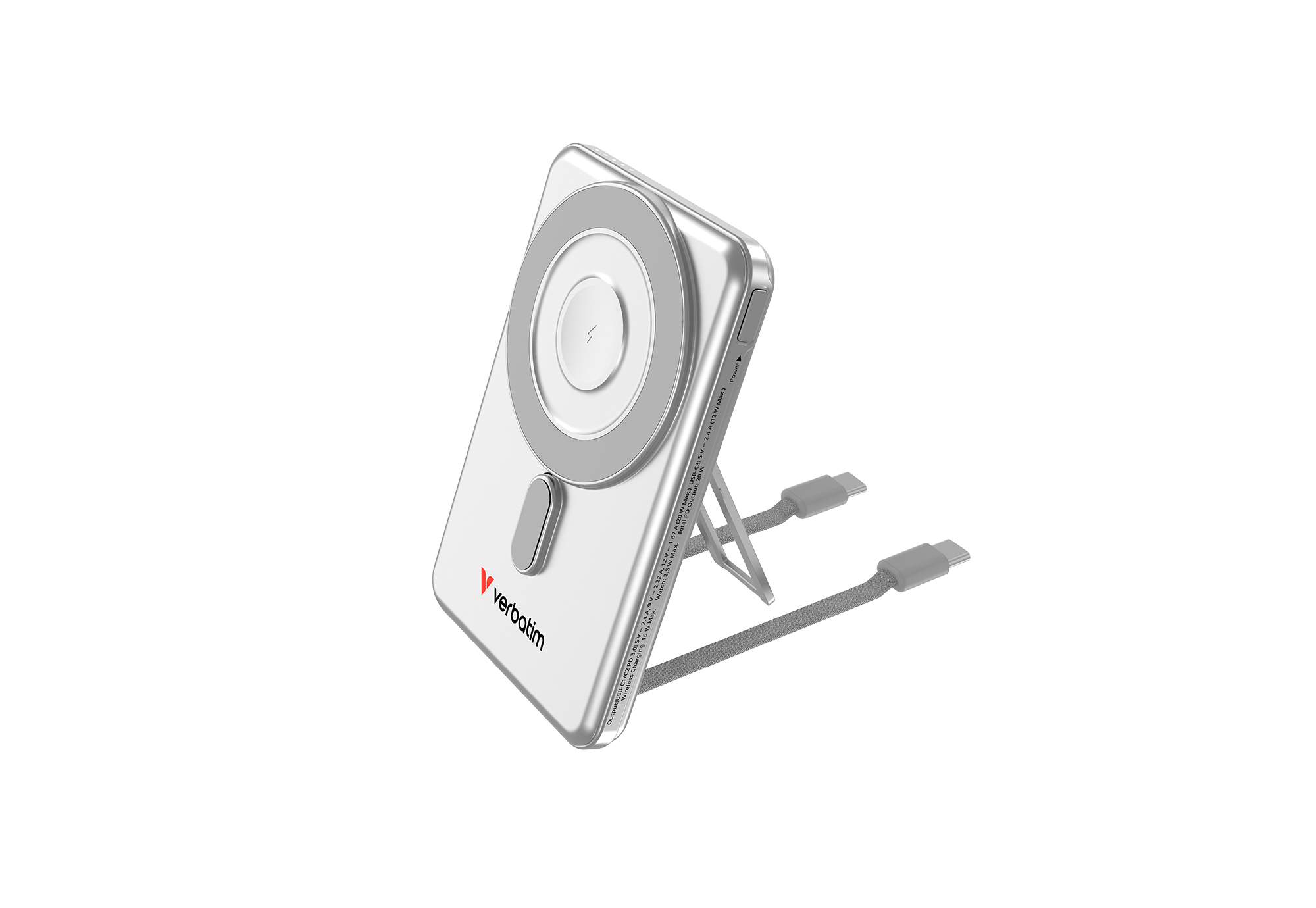 Verbatim 32276, 5000 mAh, Adaptive Fast Charging, Power Delivery 3.0, Quick Charge 3.0, Trådløs opladning, 3,85 V, 20 W, Sølv