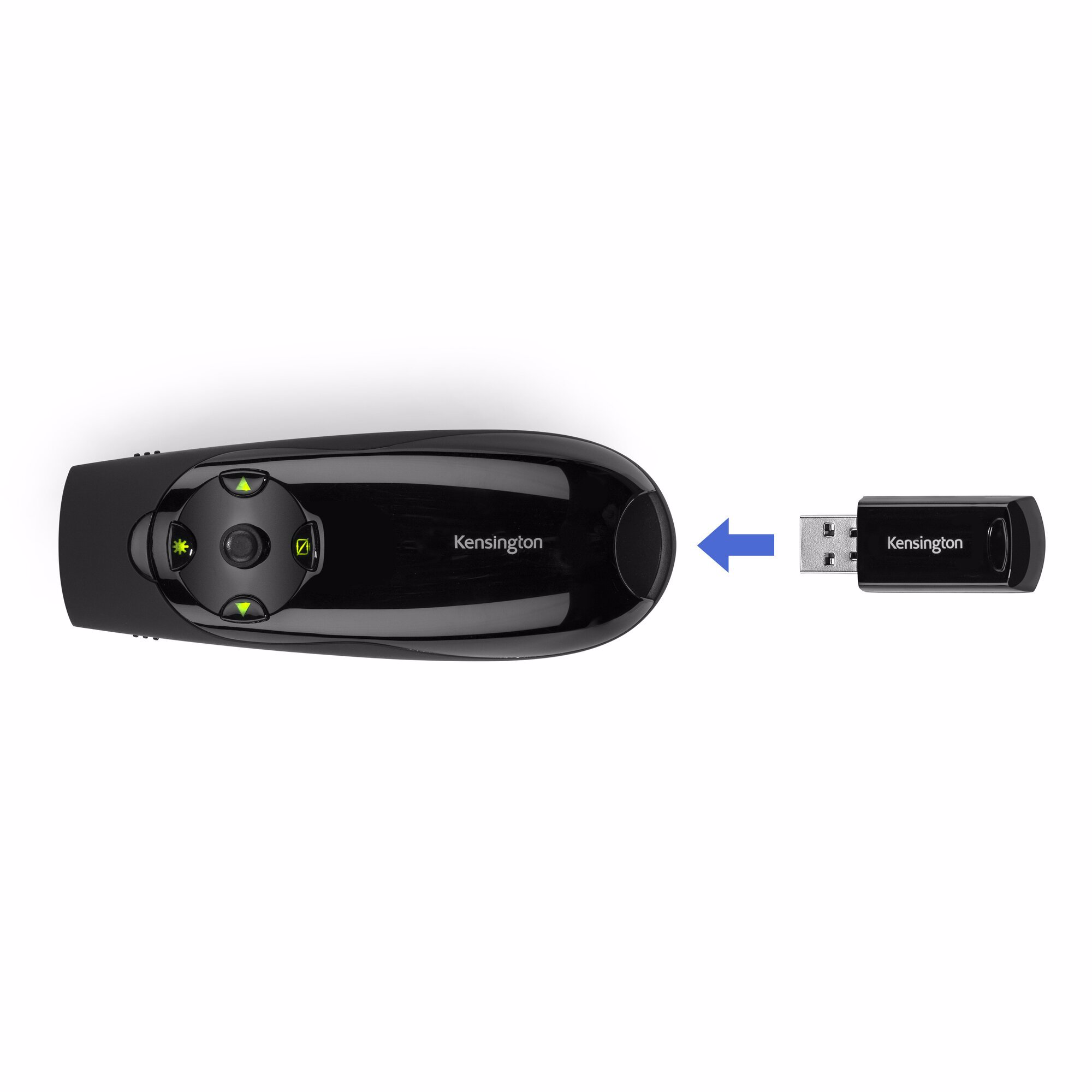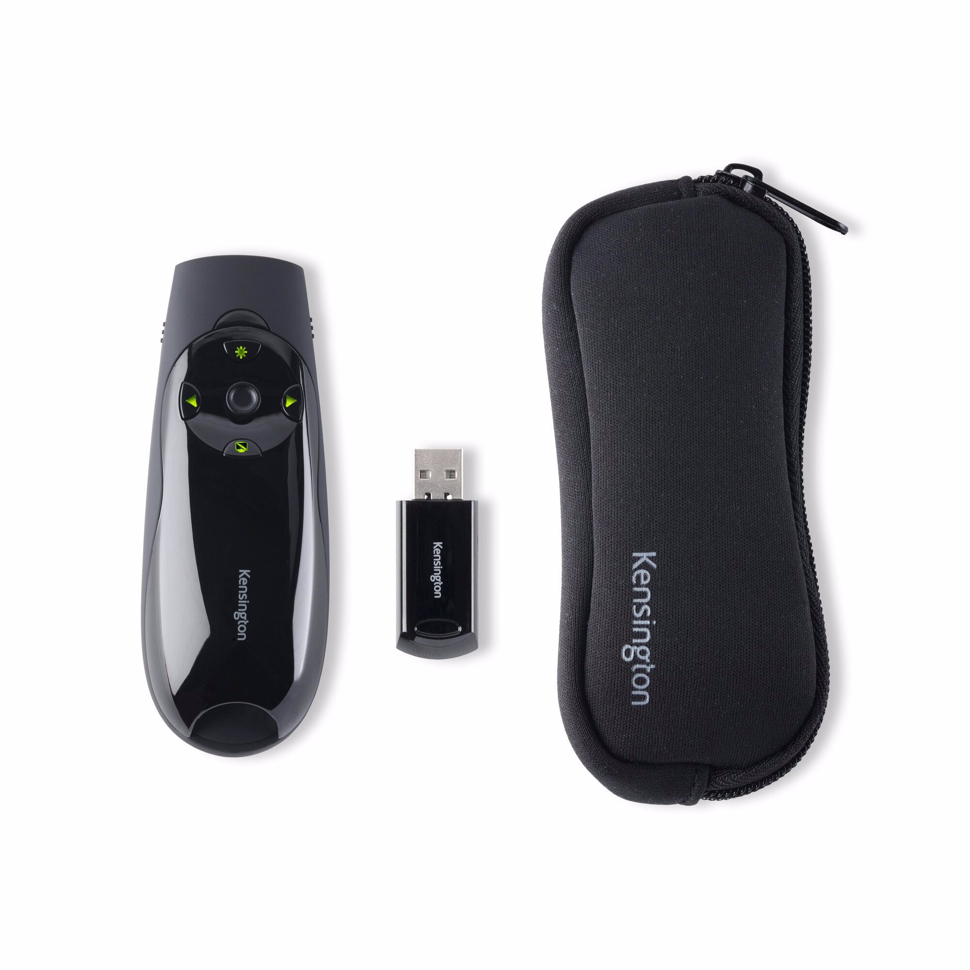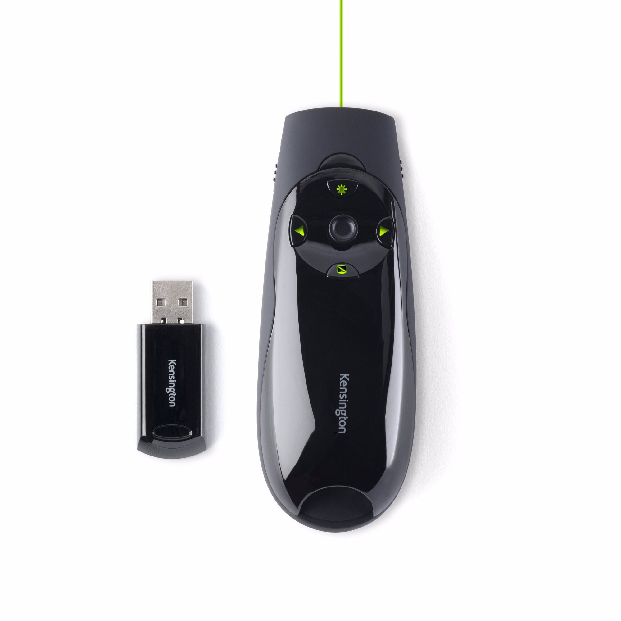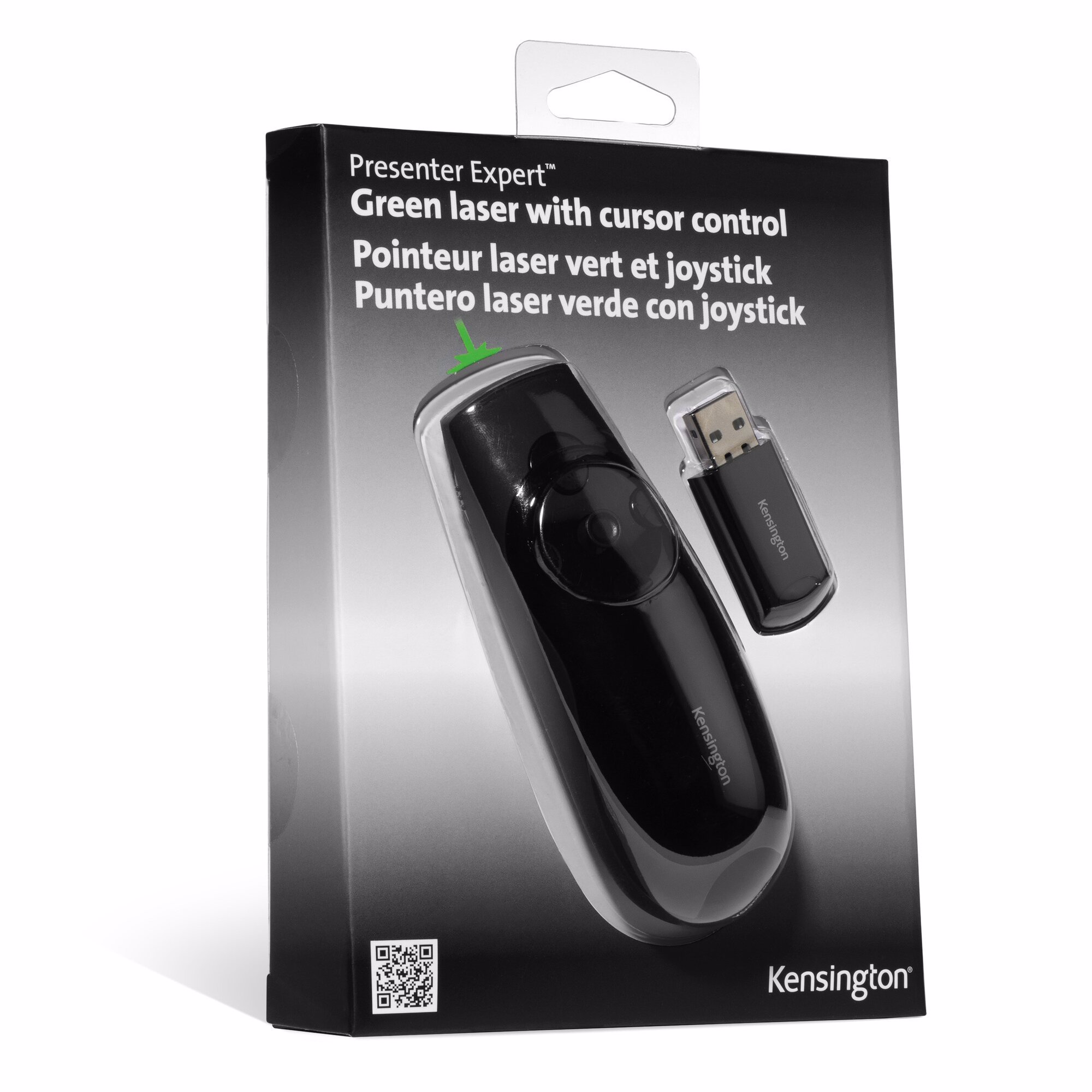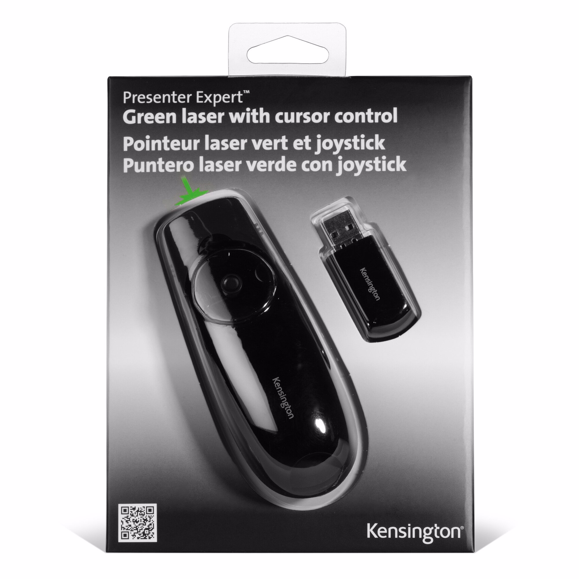 Kensington Presenter Expert™ bruger en lysegrøn laser (x10 skarpere end traditionelle røde lasere), hvilket gør den ideel til brug, når der præsenteres på lyse LED- eller tv-skærme. Med et intuitivt 4-vejs joystick kan Presenter-værktøjet bruges som en mus med op/ned og venstre/højre-styring Den trådløse 2,4 GHz modtager gemmes i enheden, når den ikke er i brug.