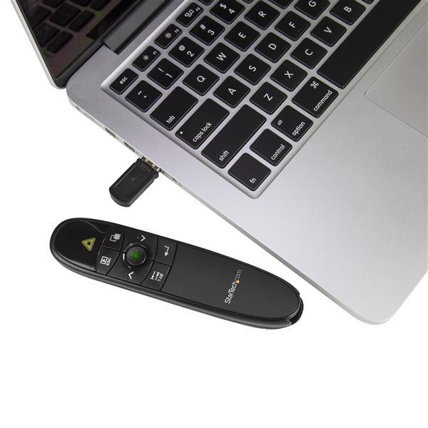 The USB receiver works with virtually any Mac or Windows computer. Simply plug the receiver into your laptop and you're ready to present.