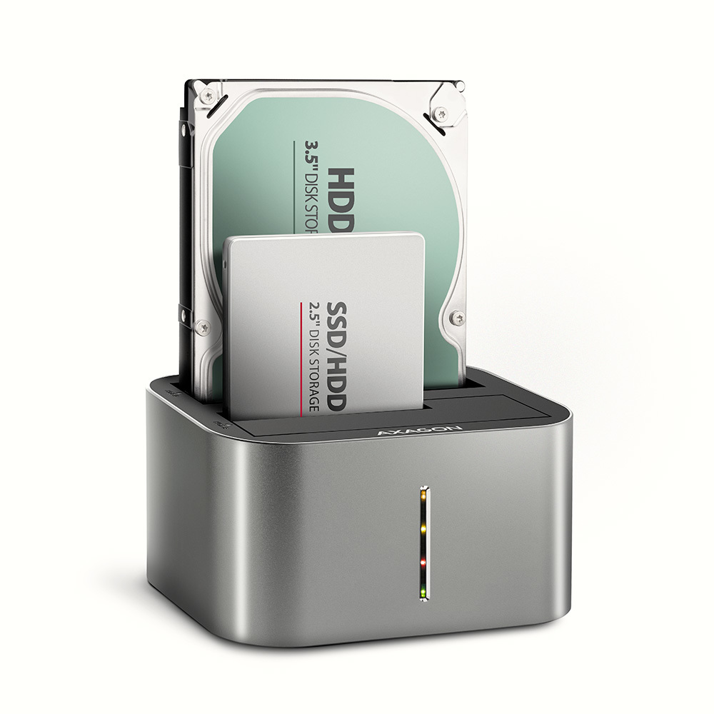 Axagon ADSA-DC, HDD, SSD, SATA, Serial ATA II, Serial ATA III, 2.5,3.5", USB 3.2 Gen 1 (3.1 Gen 1) Type-A, Grå, Aluminium