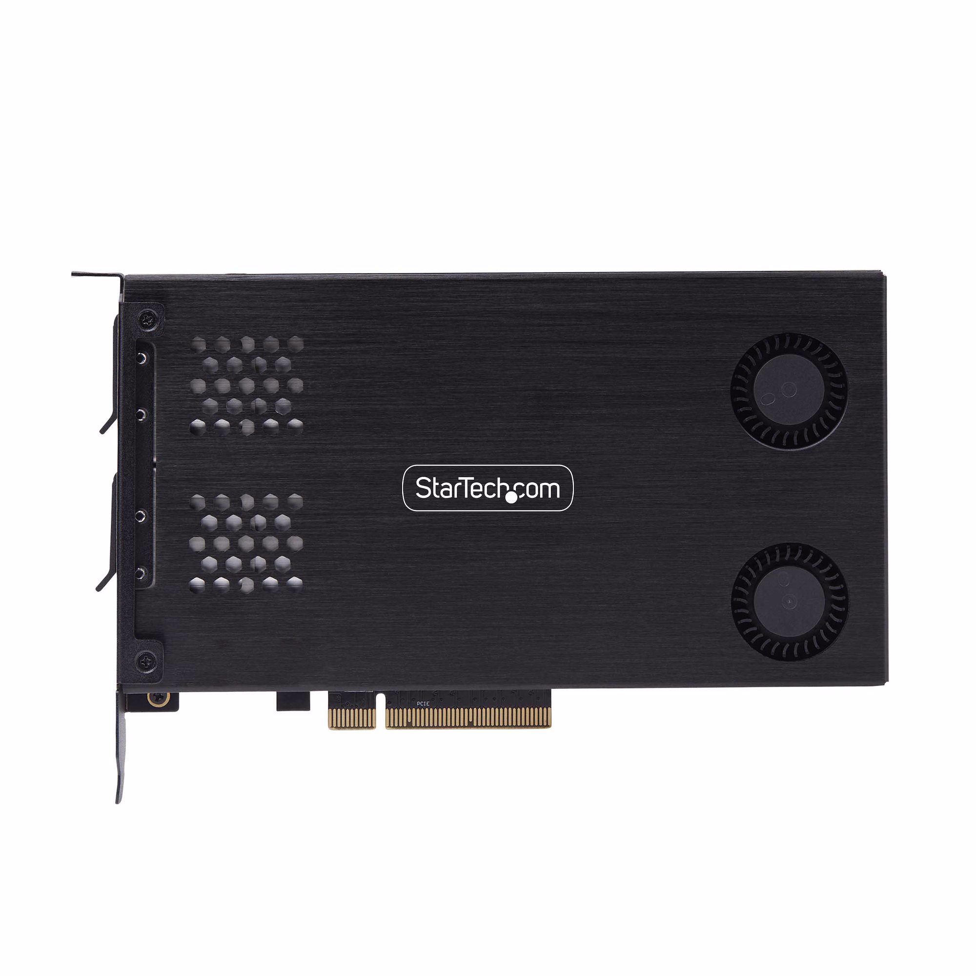 Utilize an available PCIe x8 expansion slot to install, remove, or swap PCIe M.2 SSDs. Supports 2230, 2242, 2260, and 2280 M-Key M.2 NVMe SSDs with high-performance read/write speeds up to 64Gbps per drive.