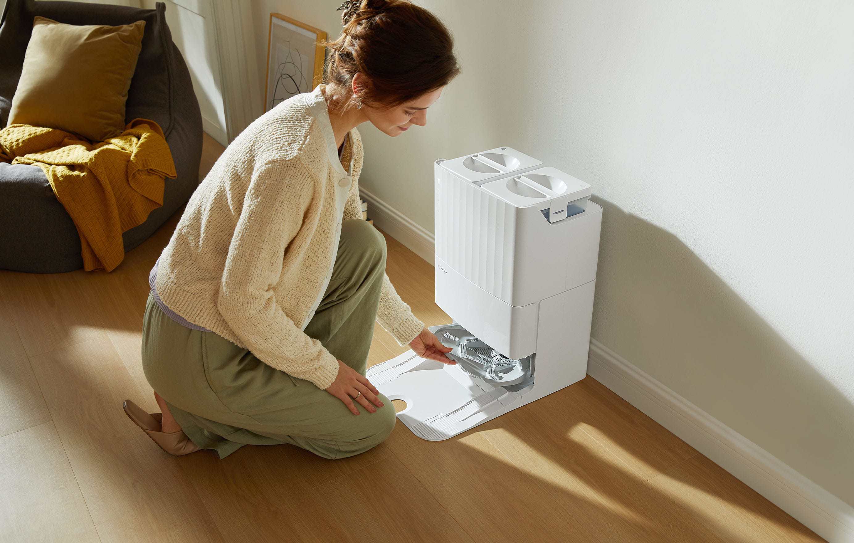 The multifunctional dock refills the robot water tank automatically during cleanup whenever the water level is low. It can mop up to 330 sqm (3552 sqft) before you need to fill the clear water tank manually.