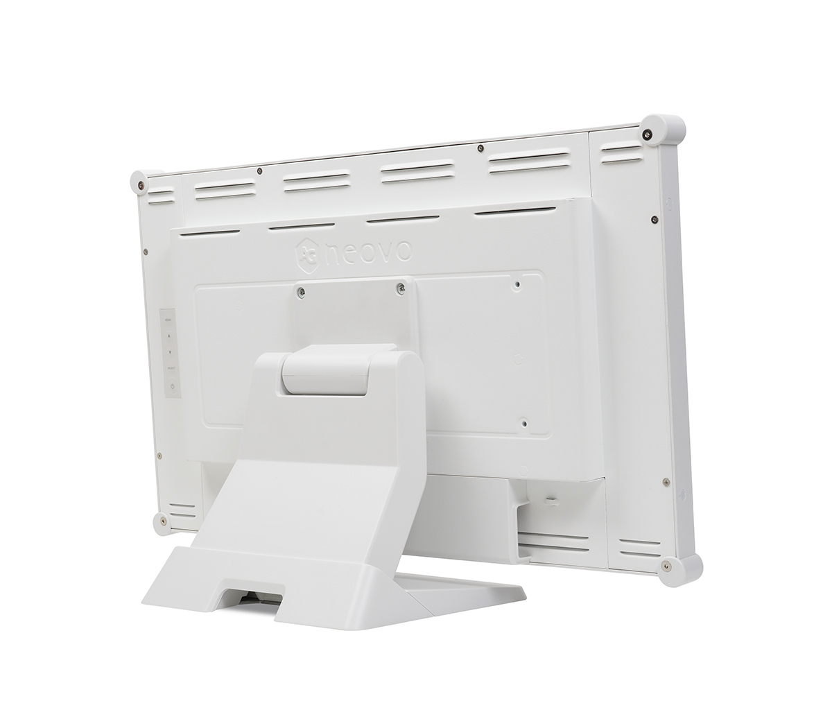 The TX-2202A White 22” 10-point touch screen monitor is VESA compatible, offering various mounting options, including desk, wall, or monitor arm mounting. The included ergonomic stand allows for a wide tilt range of -2 to 180 degrees, enhancing ergonomics during use.