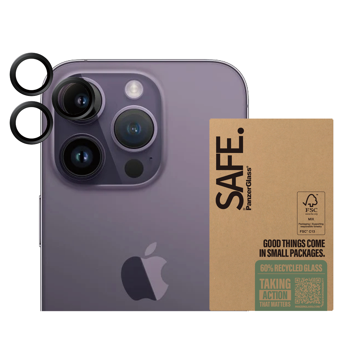 Når du vælger SAFE., gør du det ikke kun for din egen skyld, men også for alle dem, der kan få glæde af din telefon efter dig! Ved at passe godt på din elskede mobil kan du nemlig give den et andet, tredje og nogle gange fjerde liv hos en anden, som vil elske den lige så højt som dig. Det er ren telefonkærlighed. Det er ren telefonkærlighed – og én måde at bidrage til mere bæredygtig fremtid på! En anden er at bruge emballage, der er bedre for miljøet: Derfor leveres denne kameralinsebeskytter i en FSC®-mærket æske, der kan genanvendes.