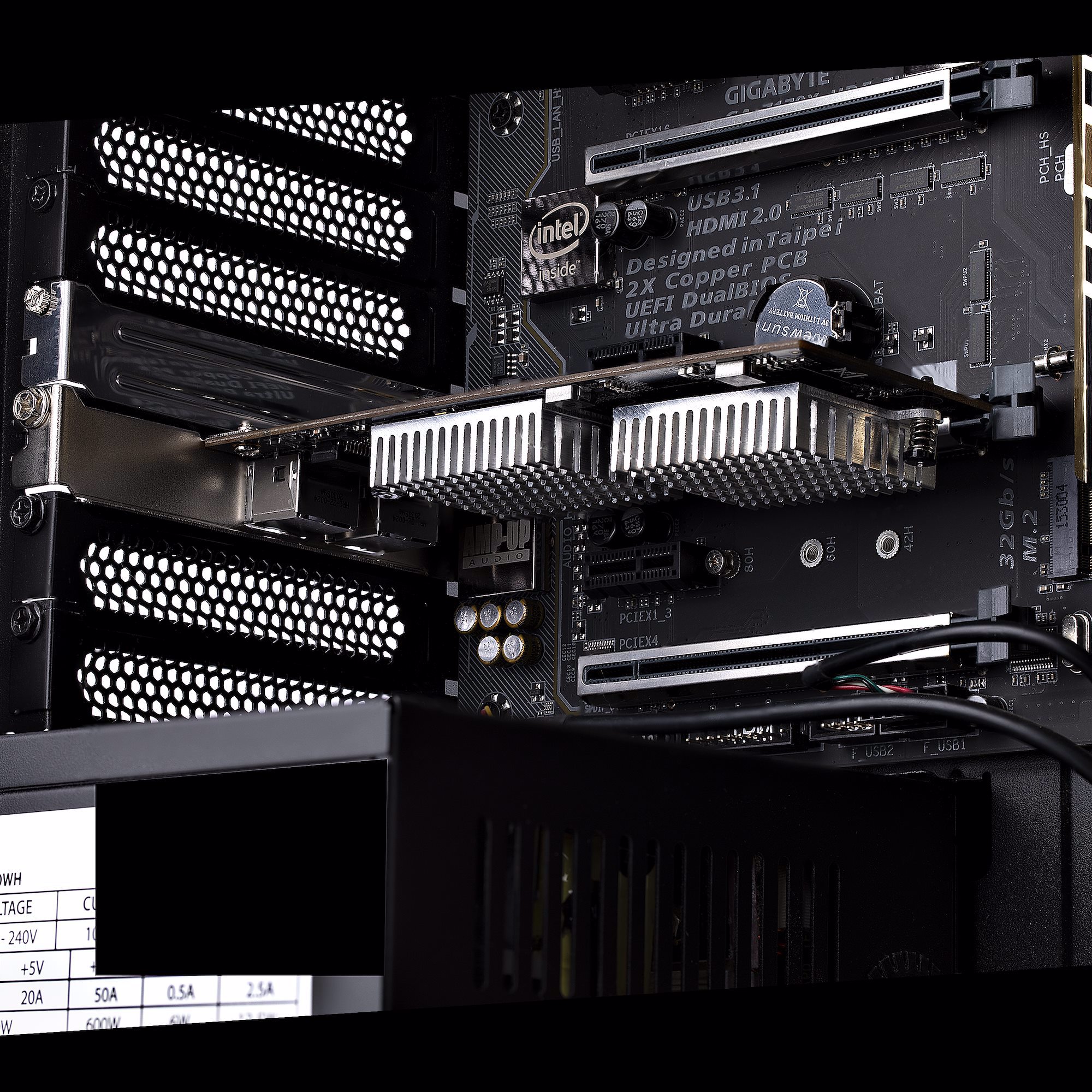 NBASE-T technology maximizes the capability of Cat5e copper infrastructure over distances of up to 100 meters. The Network Interface Card connects to a PCIe x4 3.0/4.0 (or higher) slot and comes with a full-height bracket preinstalled, and a low-profile bracket is included. This Card is compatible with Windows, Windows Server, and Linux operating systems.