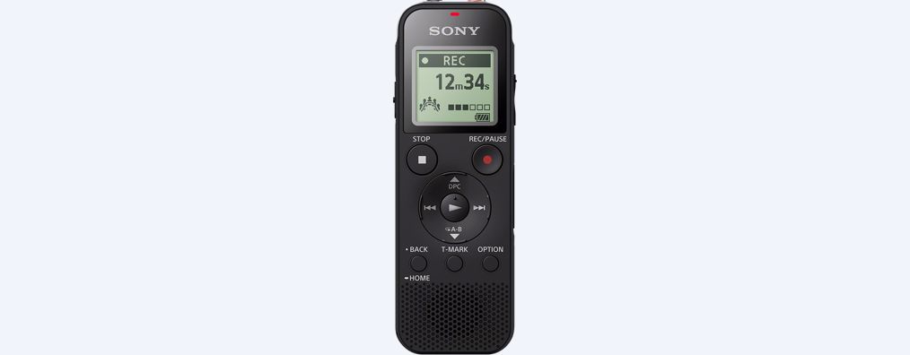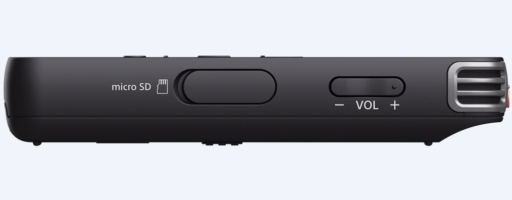 ICD-PX470 leveres med 4 GB indbygget hukommelse, hvilket giver dig en maksimal optagetid på 59 timer og 35 minutter, når du optager i stereo ved mp3 128 kbps. Du kan udvide hukommelseskapaciteten med et Micro SD-kort og få op til 32 GB yderligere hukommelse – svarende til over 536 timer (Micro SD 32 GB 、mp3 128 kbps) optagetid.