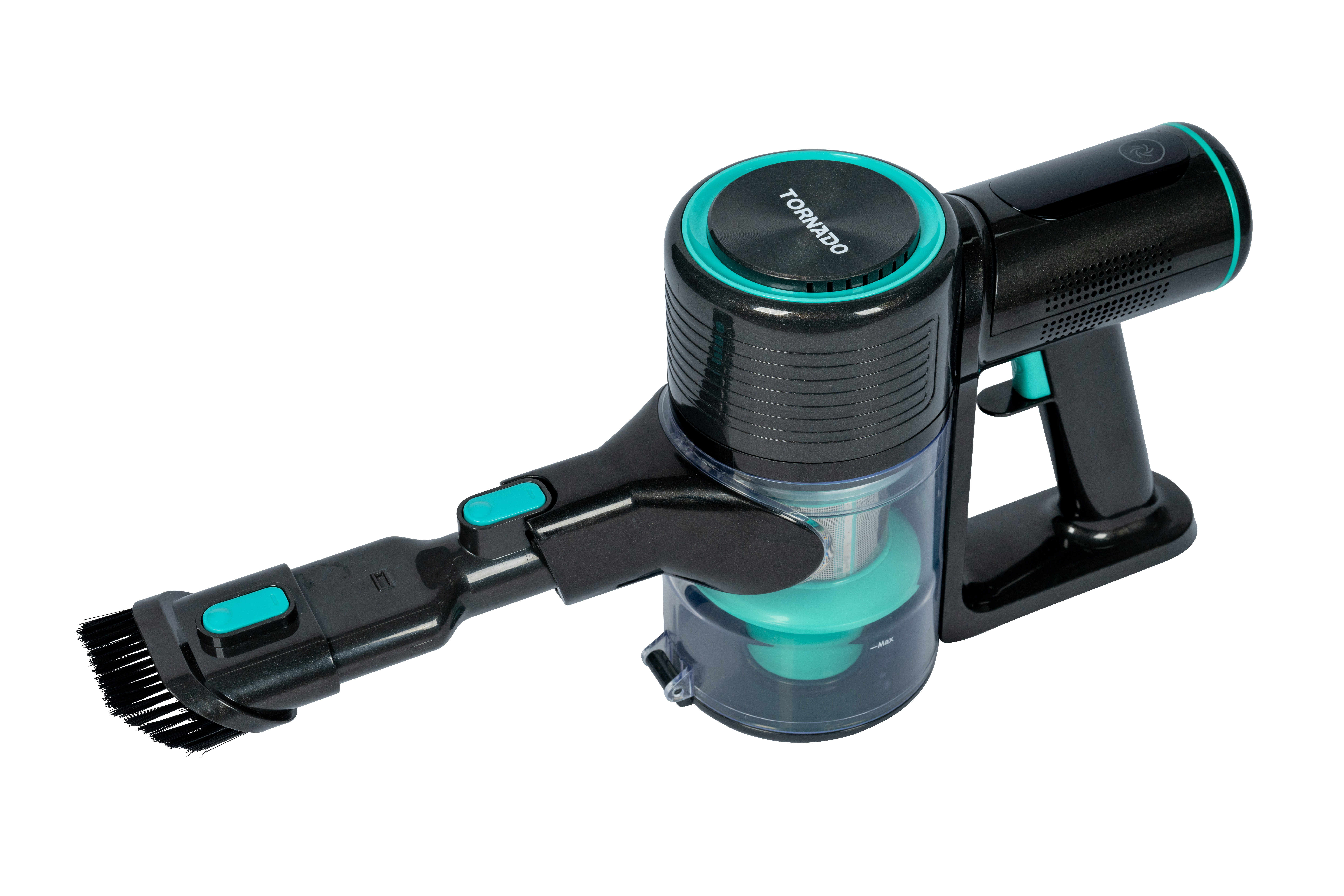 The Tornado VCHSD300GC is a high-efficiency cordless handstick vacuum built for convenience and everyday flexibility. Powered by a 300 W motor and delivering up to 80 W suction, it provides consistent performance across hard floors, rugs, and narrow spaces. The motorized roller brush, equipped with LED lighting, makes it easy to spot and lift dirt even in low-light areas like under furniture.