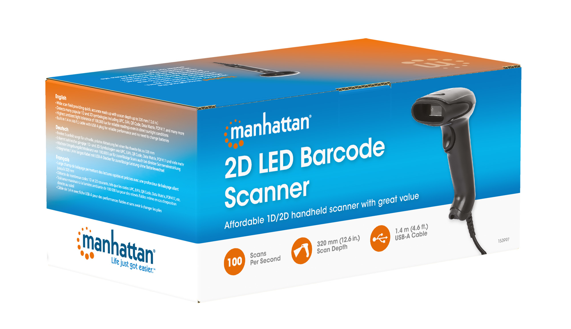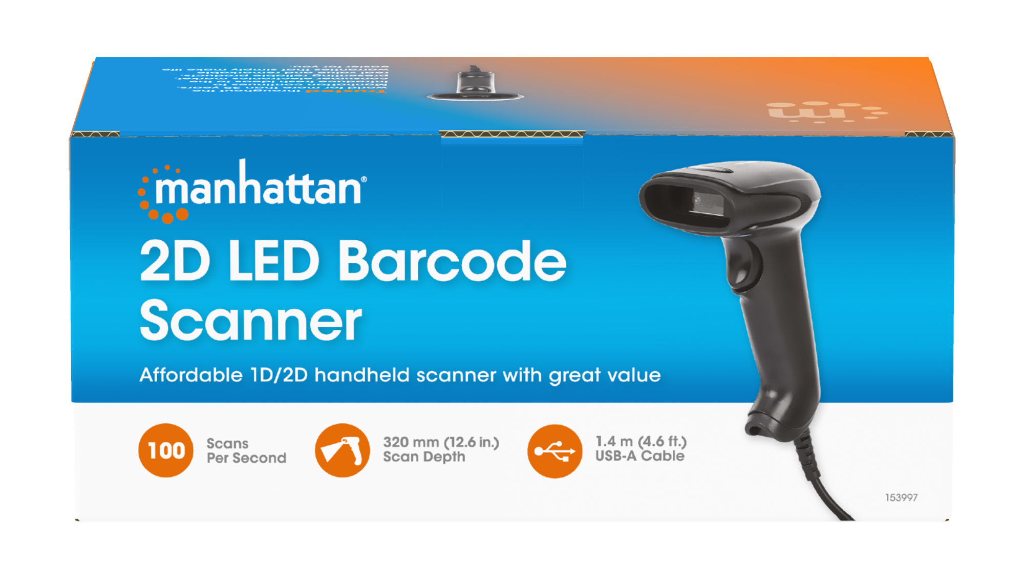 The Manhattan 2D LED Barcode Scanner is your entry-level solution for streamlined data entry and enhanced efficiency to help improve routine transactions and automate paper-based processes. Capture barcodes from mobile devices, 1D and 2D Paper barcodes on items for sale, coupons, loyalty cards and more. This scanner is built for such different industries as retail/point-of-sale, healthcare, hospitality, warehousing or logistics.