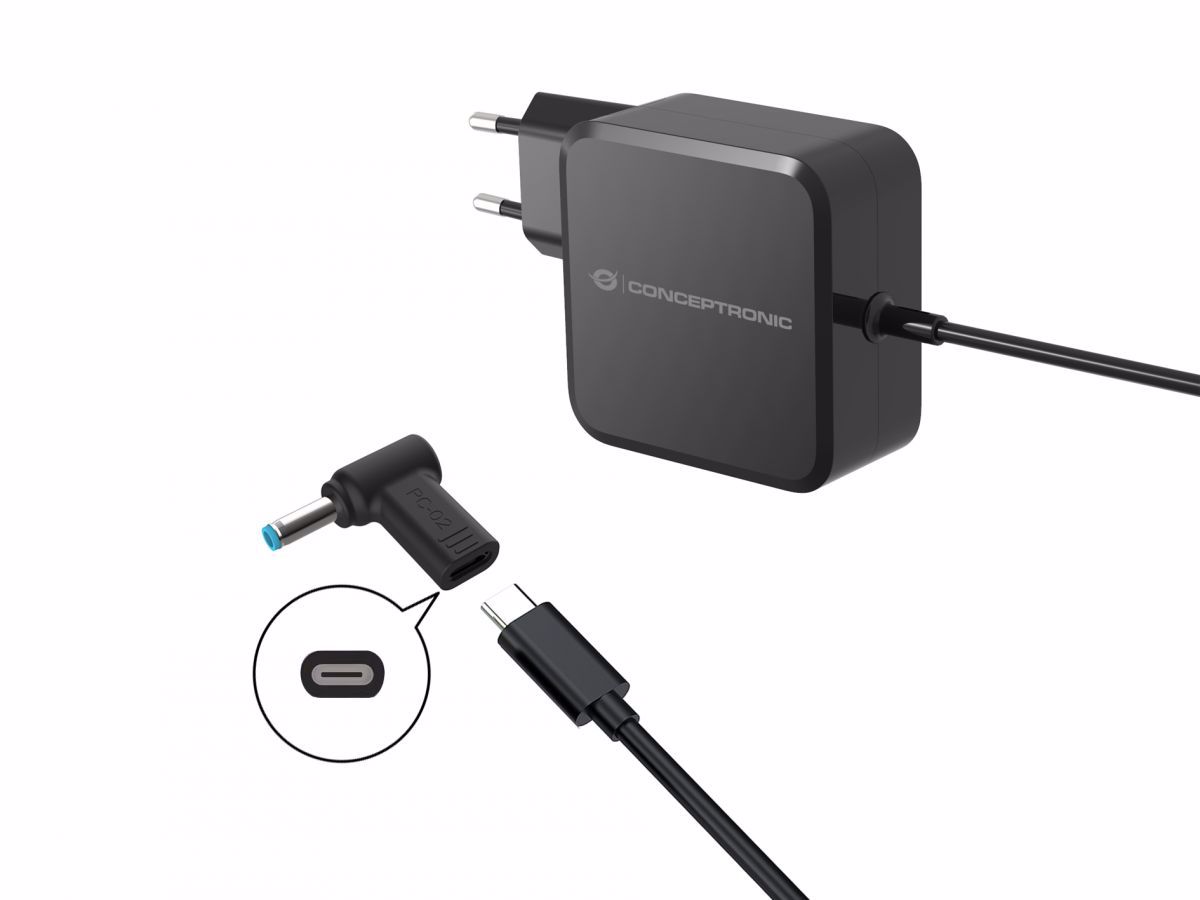 This DC to USB-C adapter is designed for use with a USB-C PD charger, enabling connection to a Dell Laptop compatible with a 4.5x3.0mm DC connector.