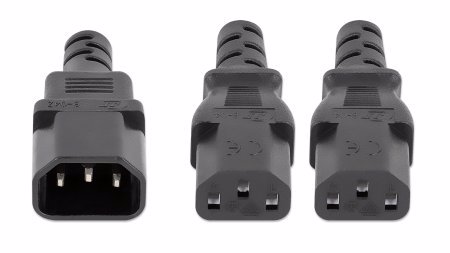 The Y-Splitter Power Cable (2 x C13 Female to C14 Male, 1.8 m) from Manhattan is the efficient way to power two devices simultaneously from a single PDU or UPS outlet. Perfect for use in server racks, IT rooms, or office setups, this dual power cord simplifies your power distribution by supporting equipment like a server and storage system or a PC and monitor - all from one power source.