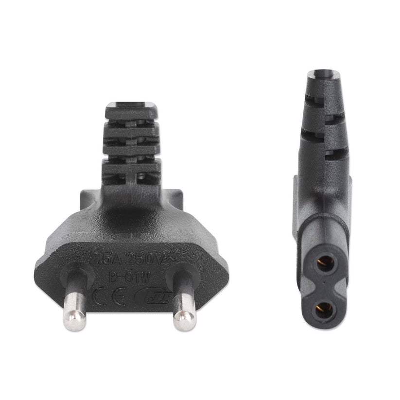The Manhattan Angled EU Power Cable (C7 to CEE 7/16) is the perfect solution for delivering safe, reliable AC power to your compact electronics. With its 90° angled plugs on both ends, this cable is made for tight spaces - ideal for use behind desks, cabinets, or entertainment units where straight connectors simply don’t fit.