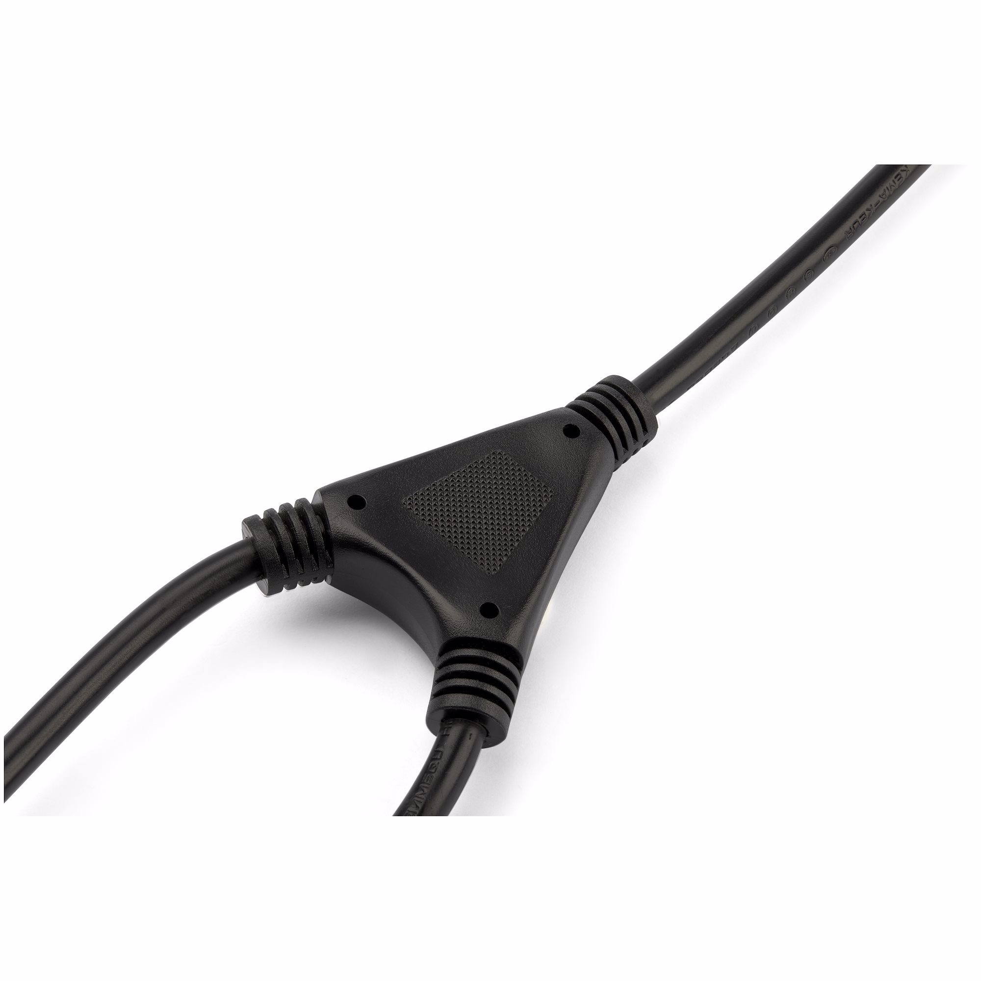 The cord length from the Y-split is 50 cm on each side, giving you an extended reach for securely connecting your devices. You can power two monitors, or a monitor and a computer, or two switches in a rack, without placing strain on the cord.