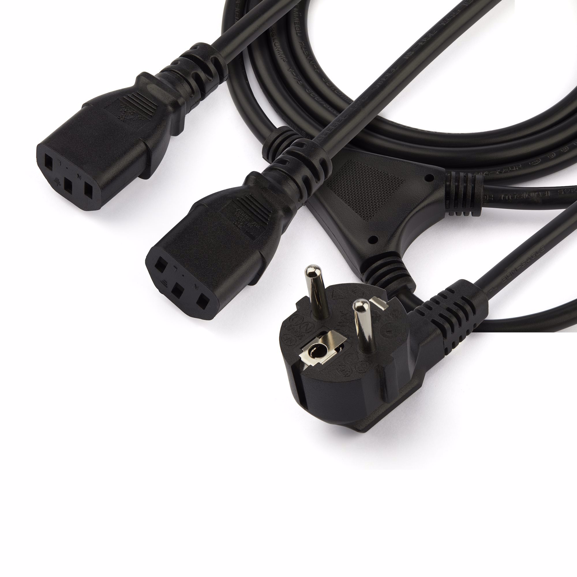 2m (6ft) Computer Power Y Cord, EU Schuko Plug to C13, 10A 250V, 18AWG