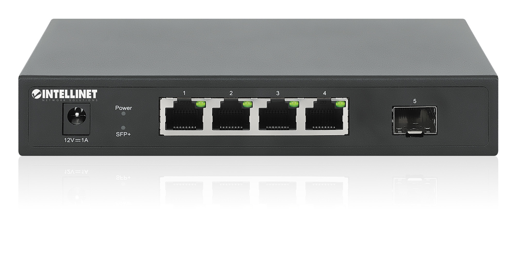 The 5-Port Switch with 4 x 2.5G Ethernet Ports and 1 SFP+ Uplink from Intellinet Network Solutions passes data to a number of end devices. Equipped with four multi-gigabit Ethernet copper ports, this Switch can deliver network speeds up to 2500 Mbps.