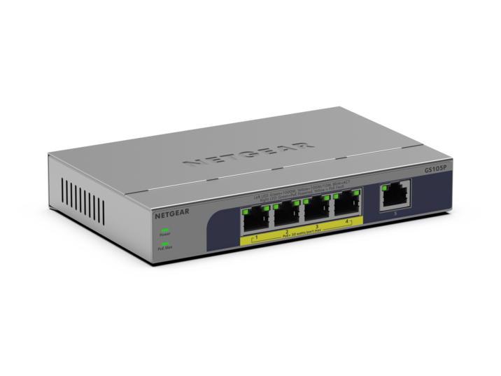 NETGEAR GS105P Ikke administreret Gigabit Ethernet (10/100/1000) Strøm over Ethernet (PoE) Bord-/vægmontering Grå