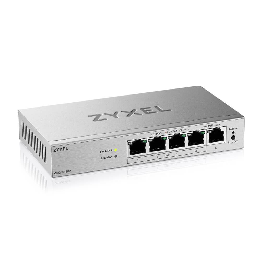 There are five models for GS1200v3 series, coming with non-PoE (GS1200-5/8) to connect to devices including PCs, NAS, and print servers, PoE capable (GS1200-5HP/8HP) to provide power to IP CAM, wall mounted AP and PoE standard devices, and fiber uplink (GS1200-10) for easily deployment in hallways to connect network devices on the same floor and link them back to the core network.